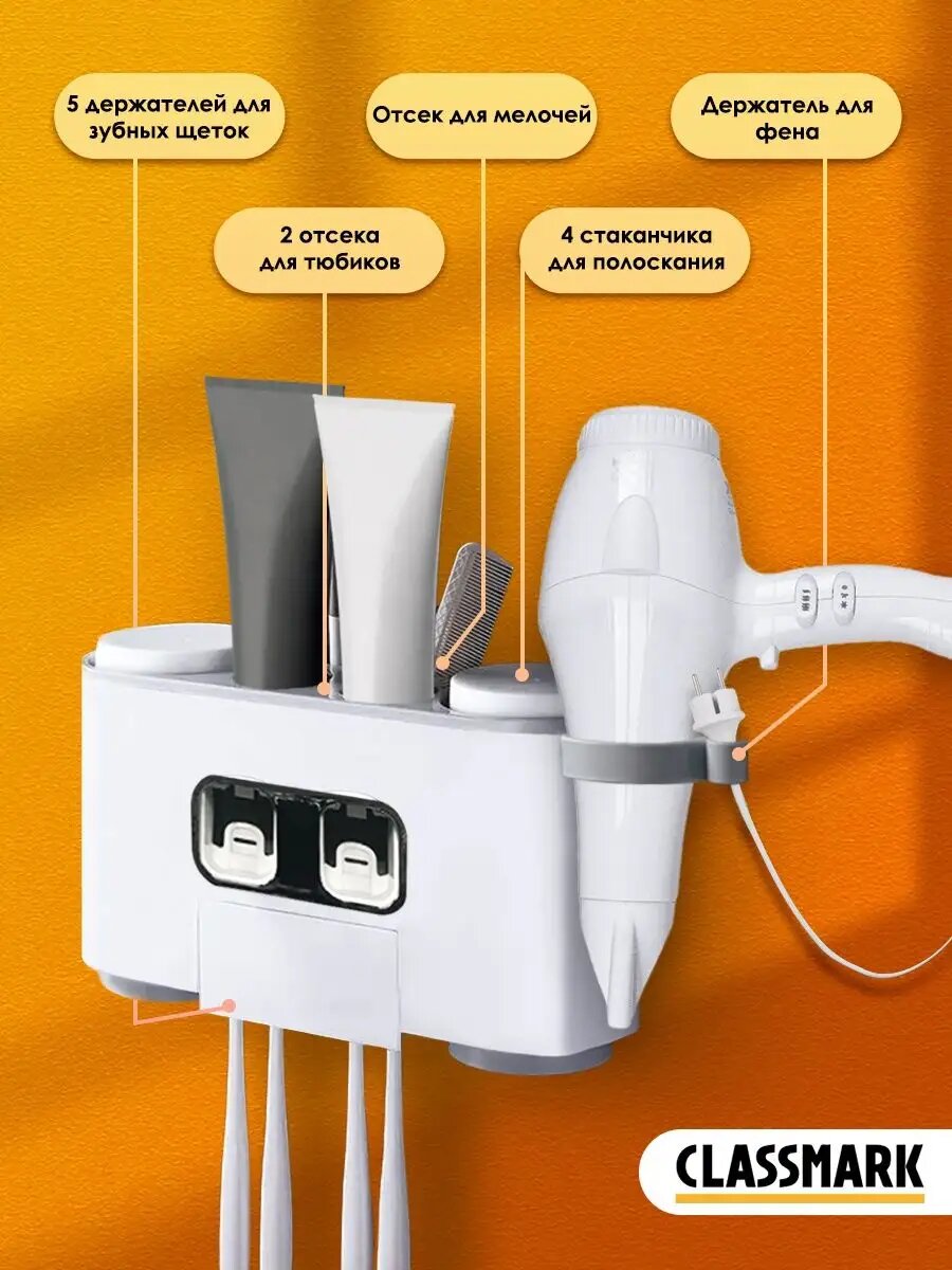 Купить Дозатор зубной пасты с держателями щеток настенный диспенсер
