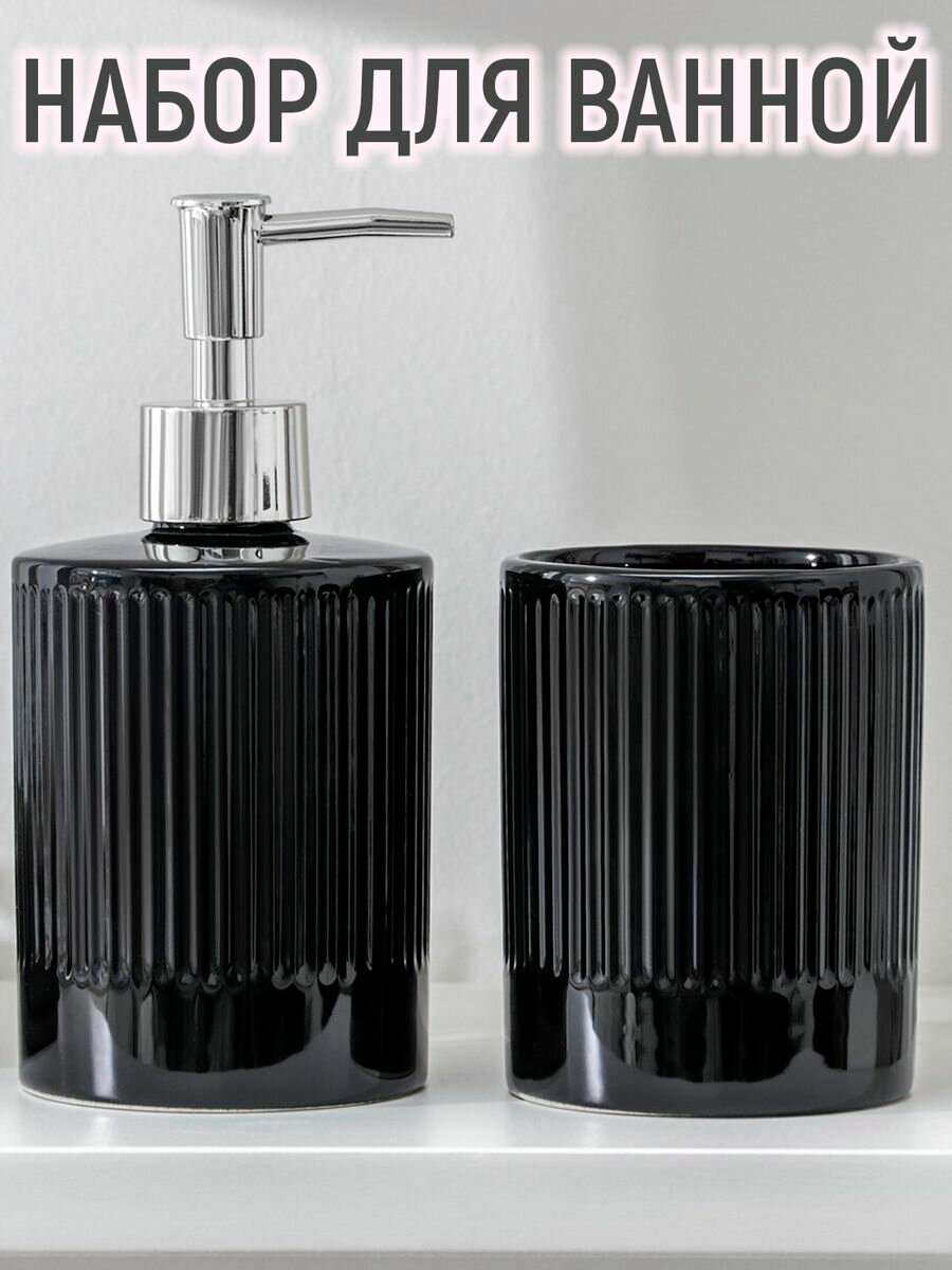 Набор аксессуаров для ванной комнаты «Лина», 2 предмета (дозатор для мыла, стакан), цвет чёрный интересное: