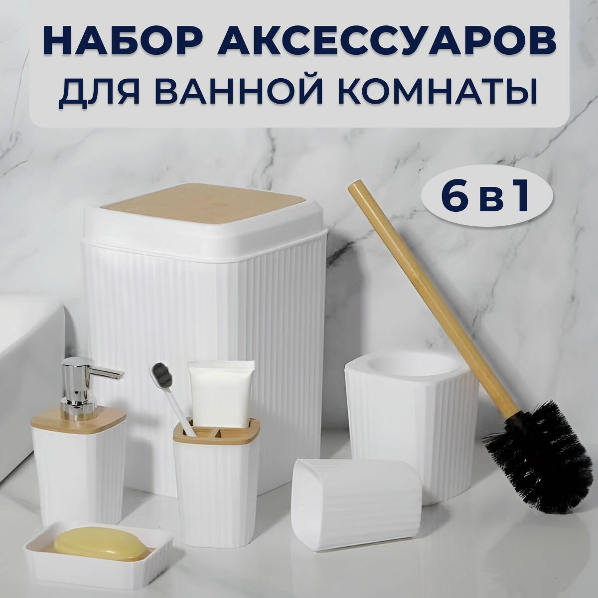 Набор для ванной NQ STYLE, 6 предметов, ABS-пластик/дерево, белый