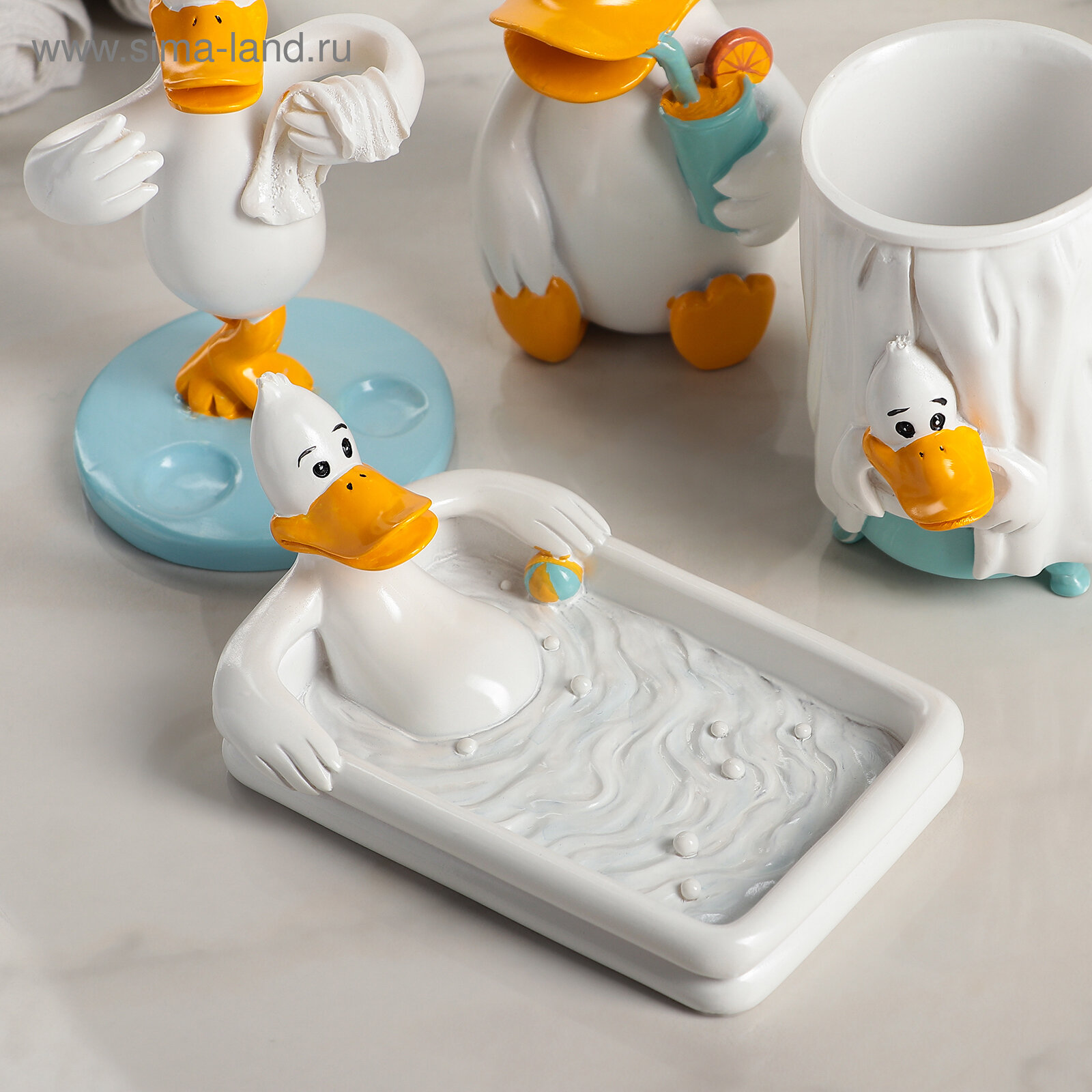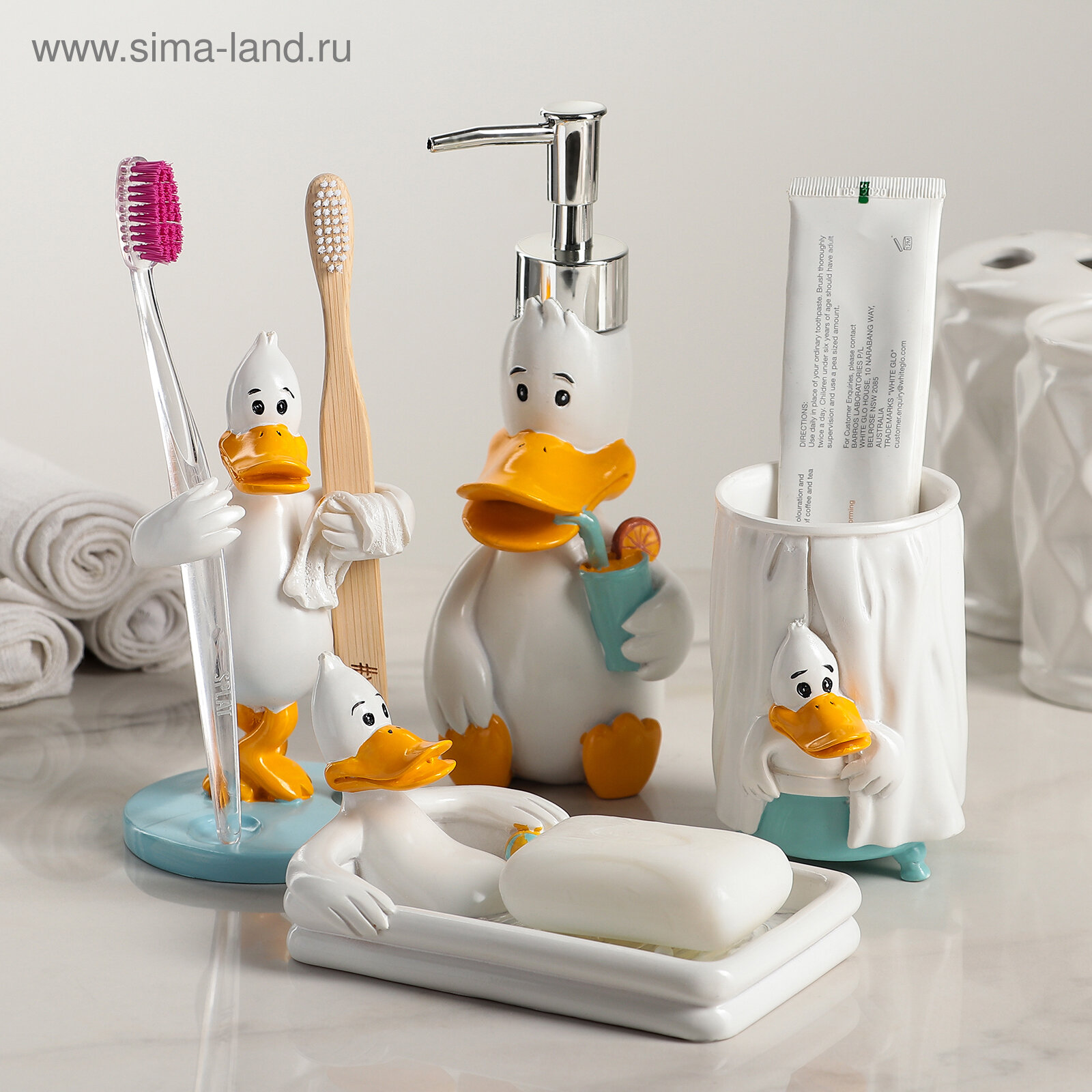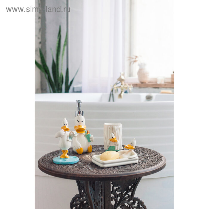 Набор аксессуаров для ванной комнаты «Утиные истории», 4 предмета (дозатор 200 мл, мыльница, стакан, подставка для щёток), цвет белый интересное: