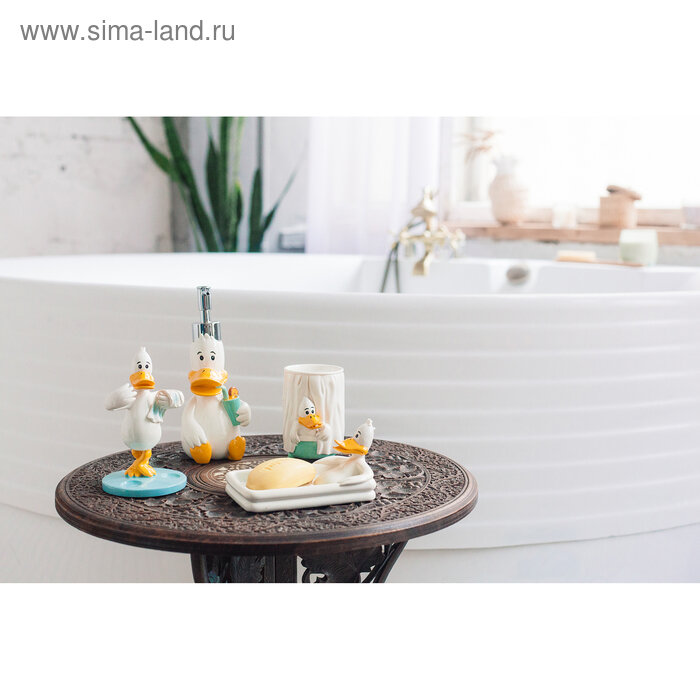 Купить Набор аксессуаров для ванной комнаты «Утиные истории», 4 предмета (дозатор 200 мл, мыльница, стакан, подставка для щёток), цвет белый