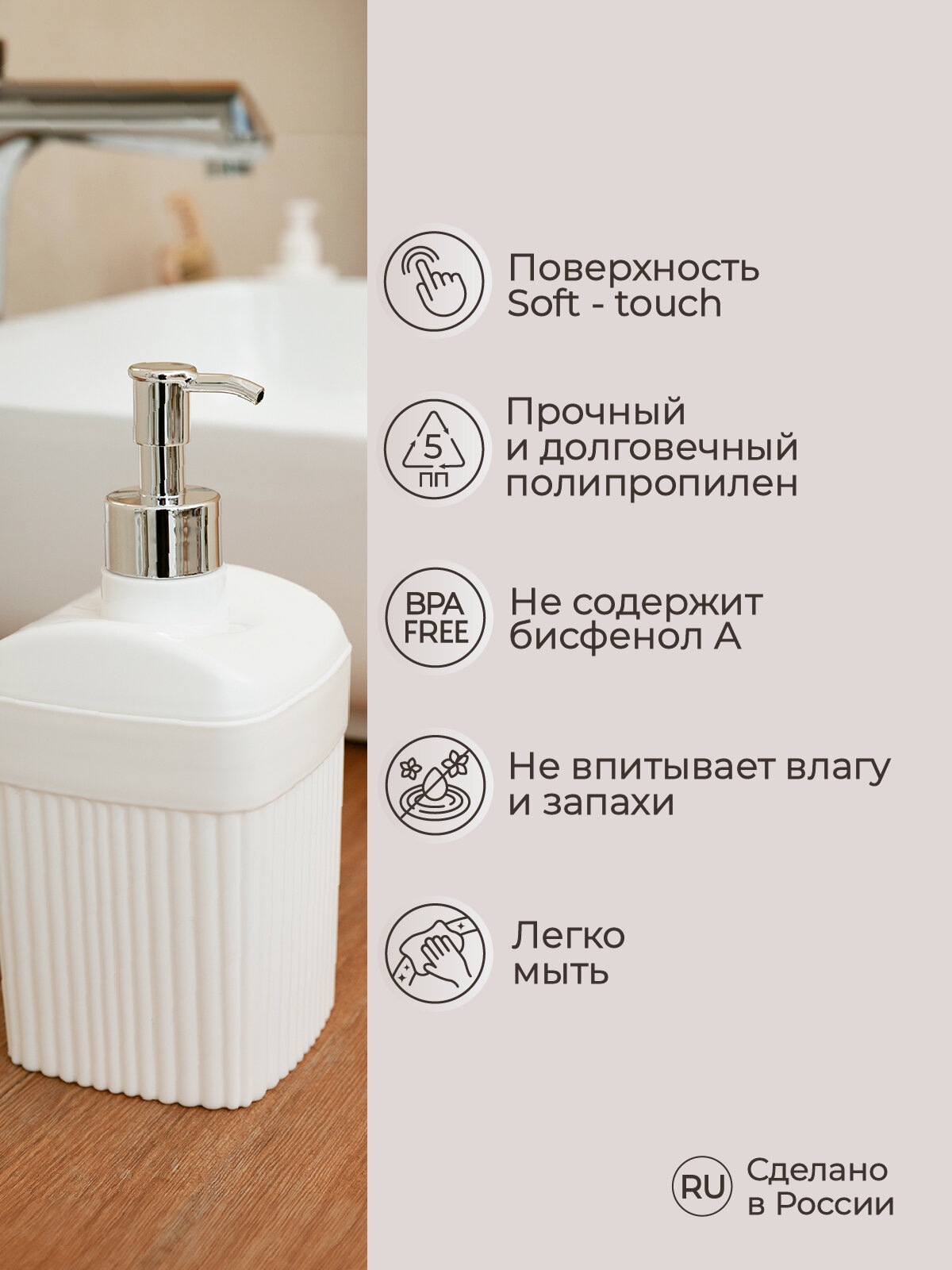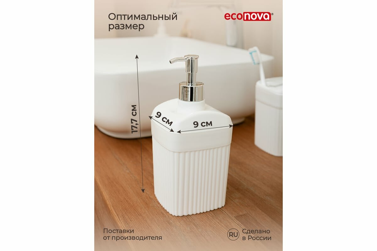 Диспенсер для жидкого мыла Econova Velvet, 90 x 90 x 187 мм, 0,65 л, белый интересное: