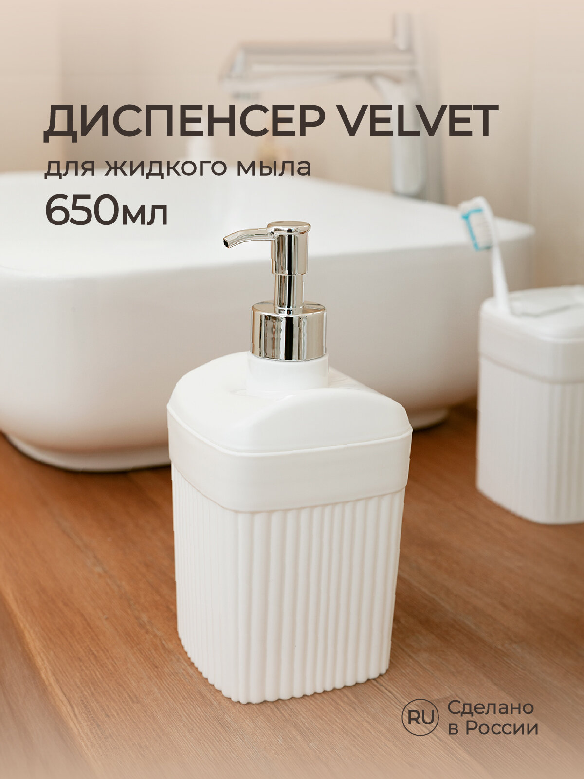 Диспенсер для жидкого мыла Velvet 90х90х187мм, 0,65л (Белый)