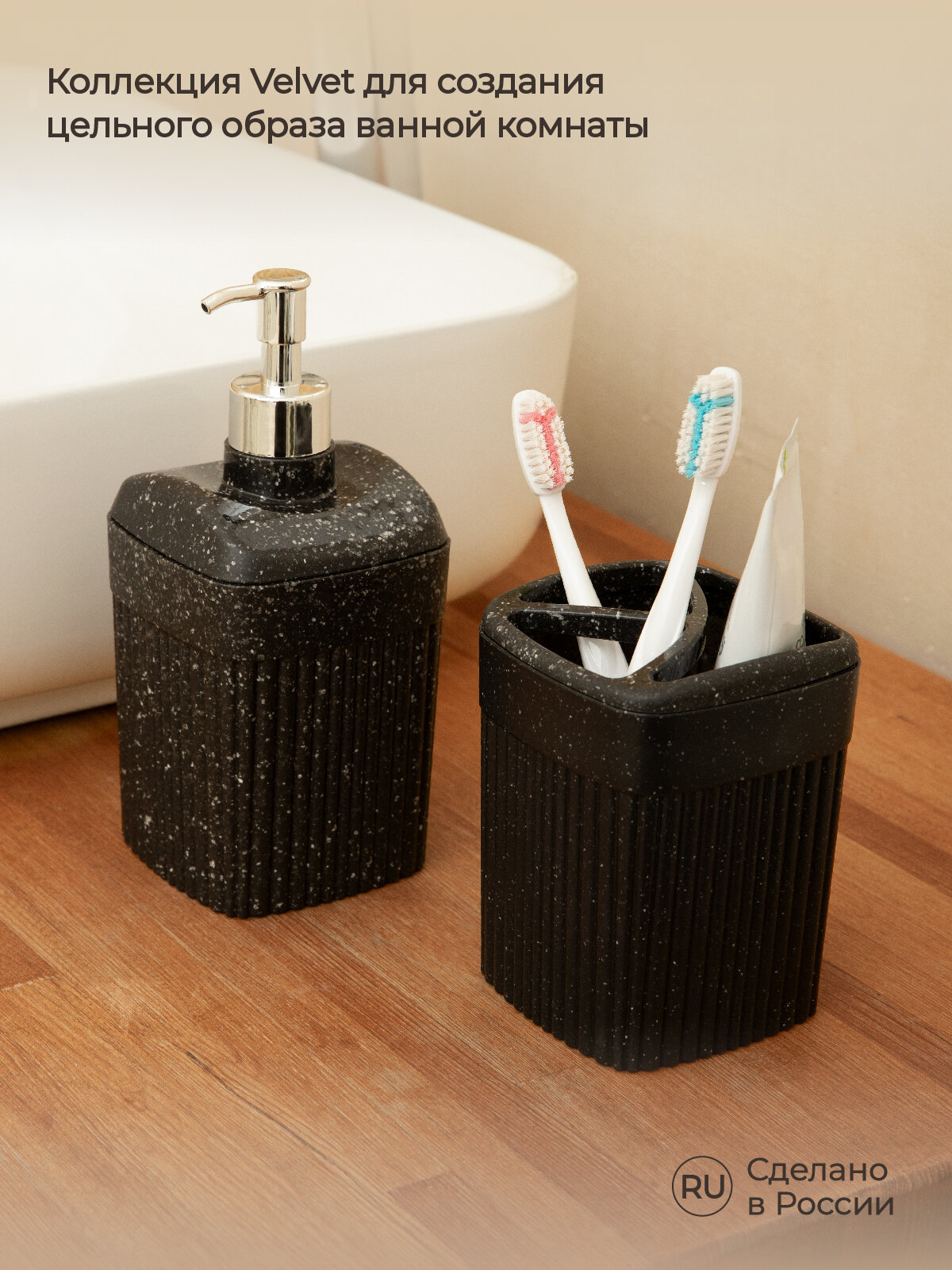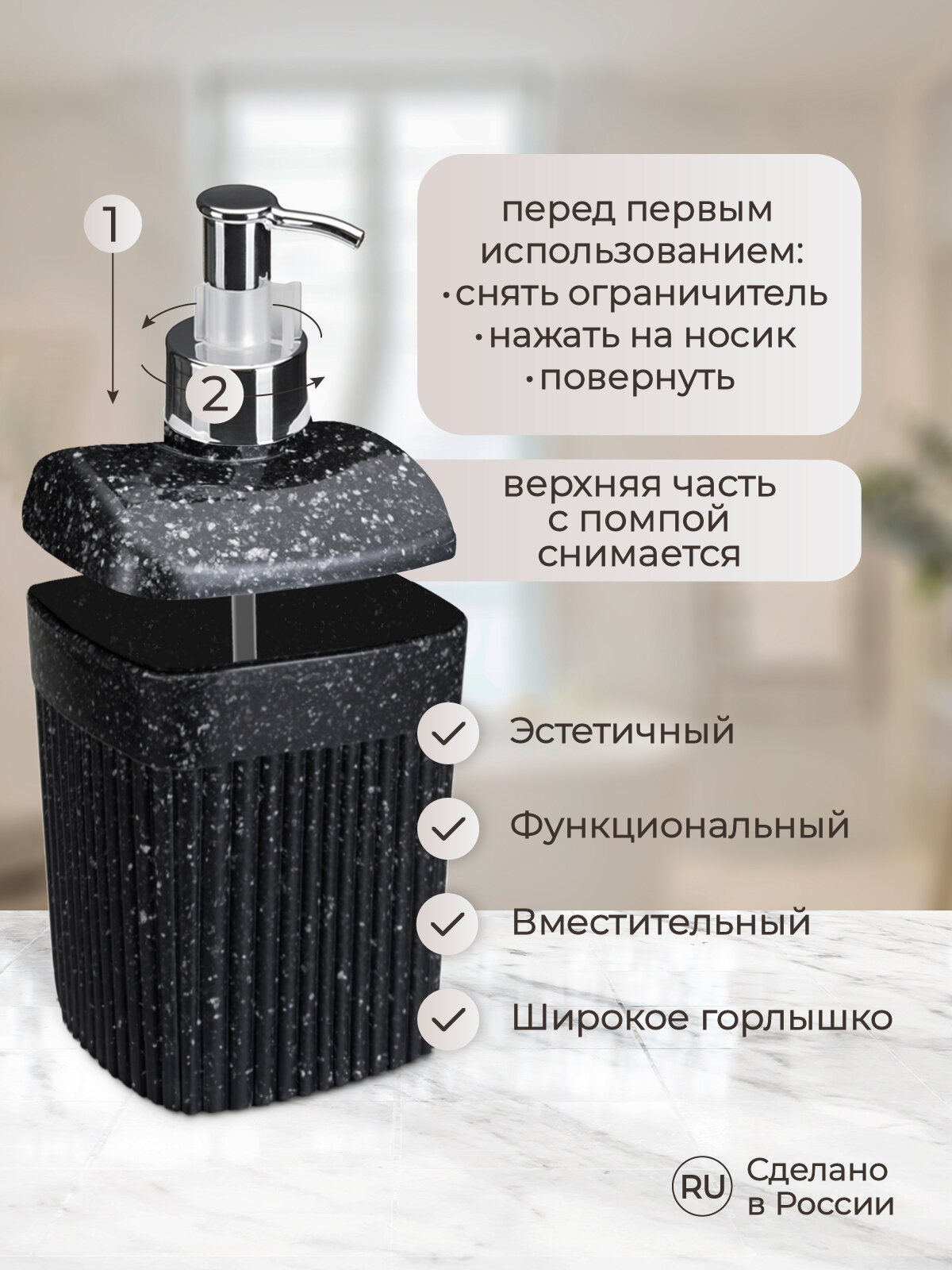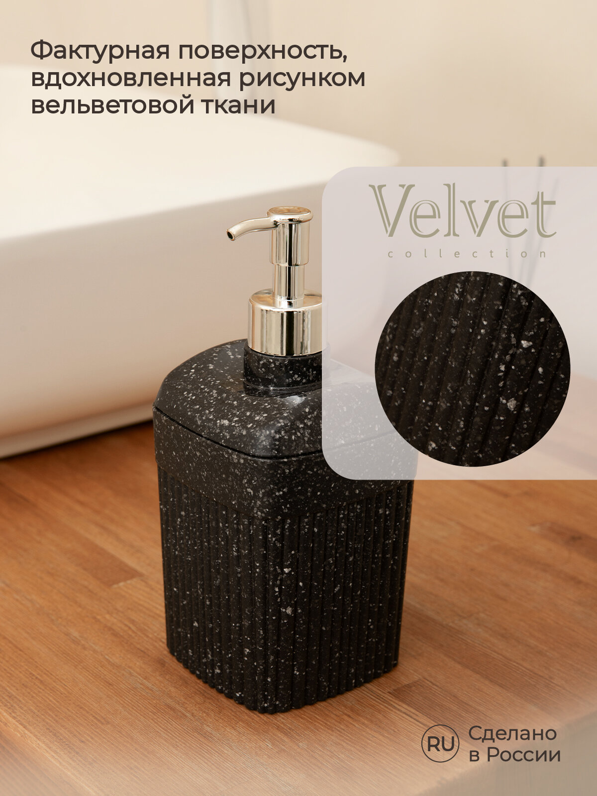 Дозатор для жидкого мыла 0,65л «VELVET» черный гранит интересное: