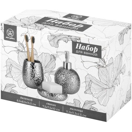 Набор аксессуаров для ванной комнаты 3 предмета Elan Gallery Серебро (мыльница, дозатор, стакан) интересное: