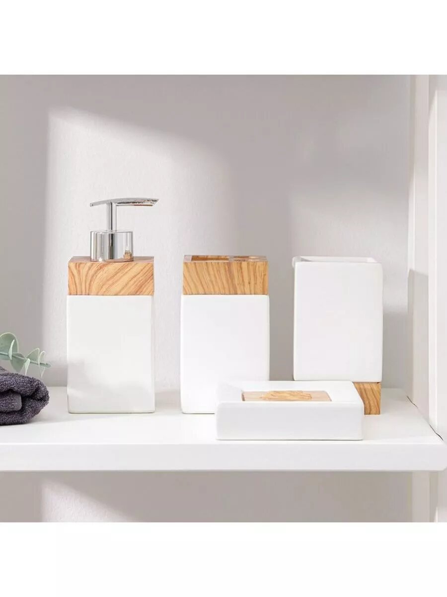 Наборы аксессуаров для ванной комнаты Natural Quatro, 4 предмета (дозатор 380 мл мыльница, 2 стакана), цвет белый интересное: