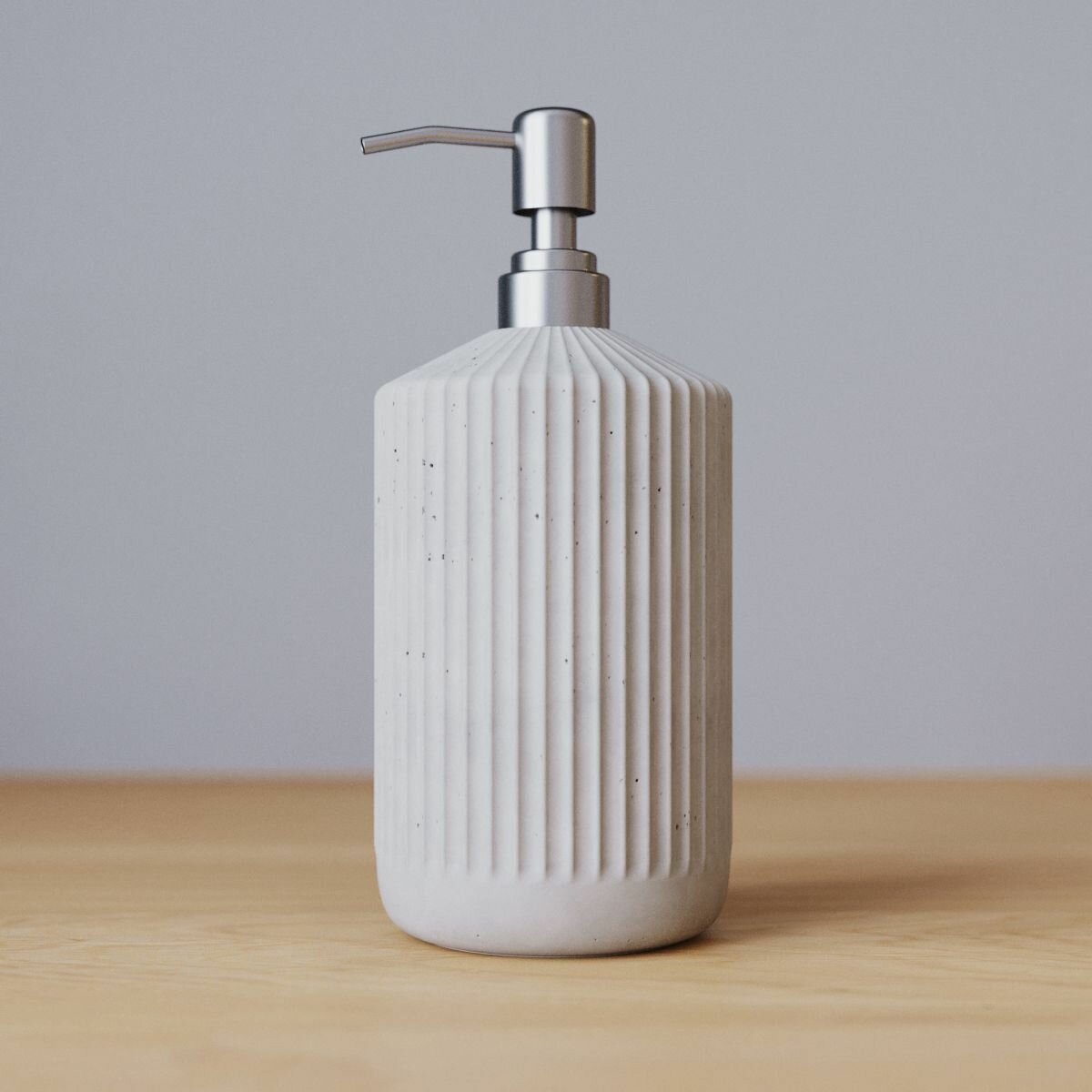 Дозатор для жидкого мыла и моющего средства, диспенсер для мыла с металлической насадкой Chloe, 0,4 л, из бетона, белый матовый