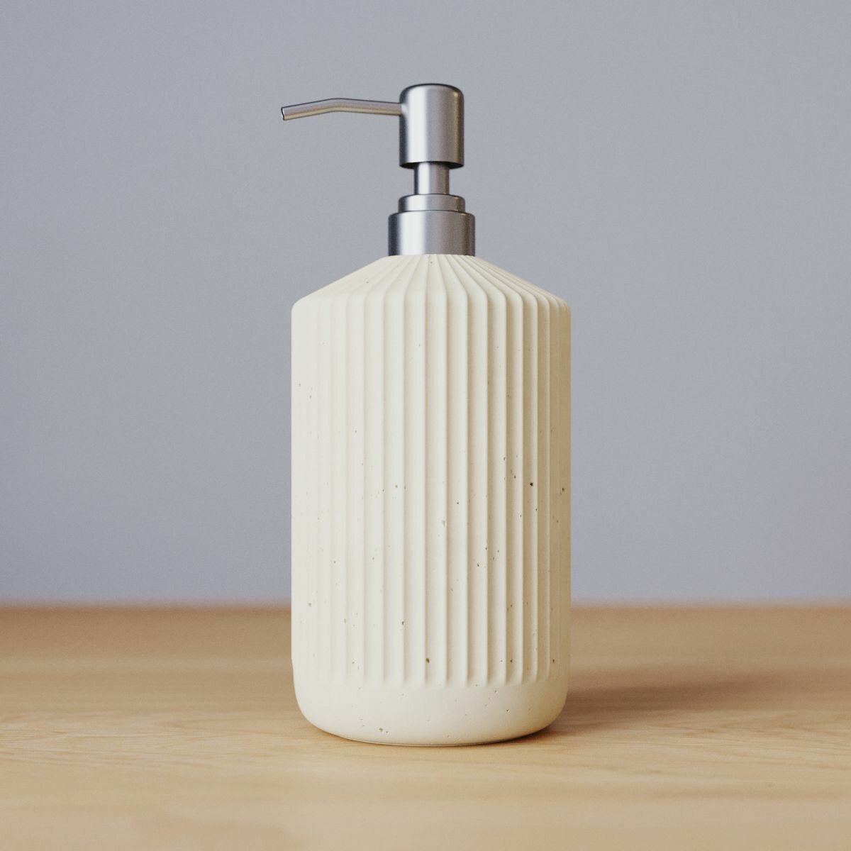 Дозатор для жидкого мыла и моющего средства, диспенсер для мыла с металлической насадкой Chloe, 0,4 л, из бетона, кремовый глянцевый