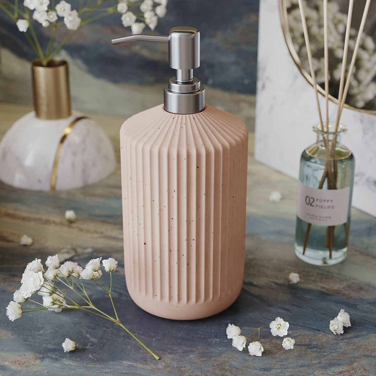 Купить Дозатор для жидкого мыла и моющего средства, диспенсер для мыла с металлической насадкой Chloe, 0,4 л, из бетона, розовый матовый