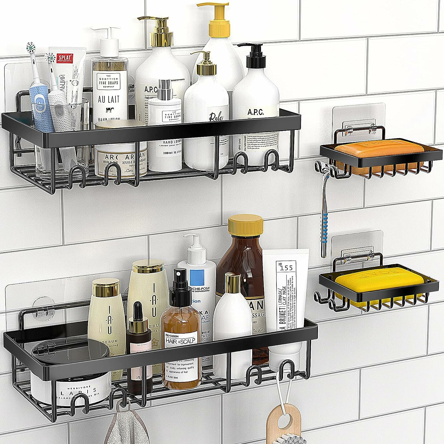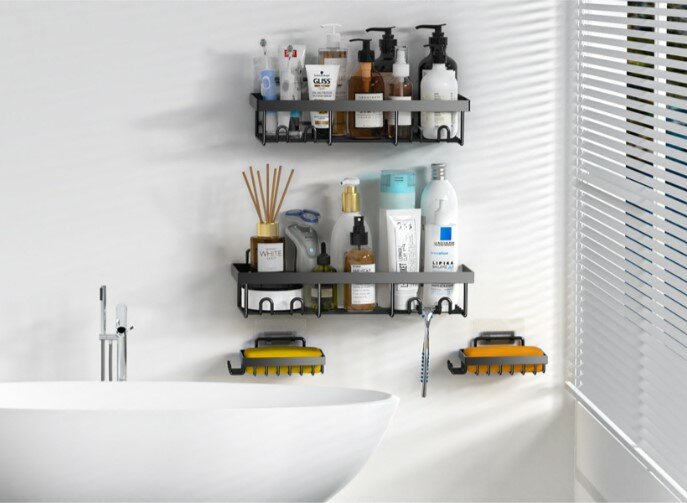 Полка для ванной и мыльницы 4 предмета из стали с крючками самоклеящаяся настенная интересное: