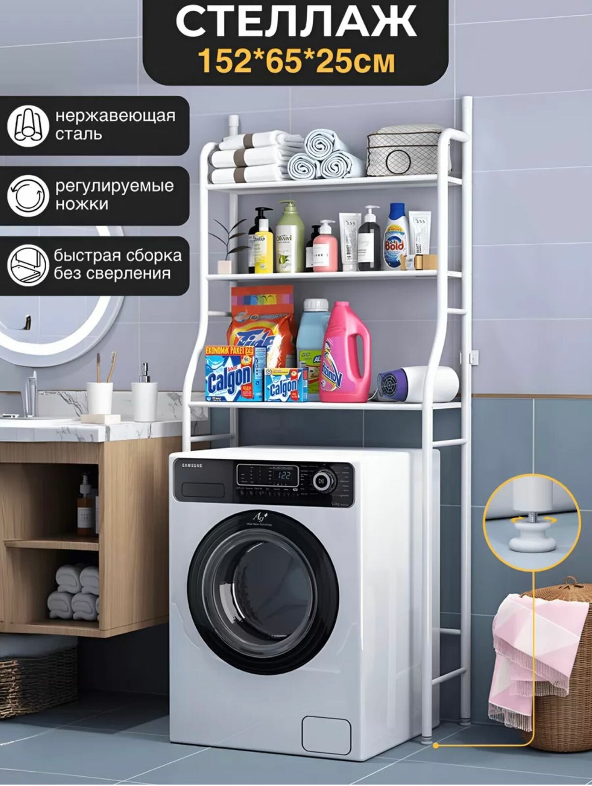 Стеллаж для ванной /для стиральной машины SOKOLTEC HW47885WH интересное: