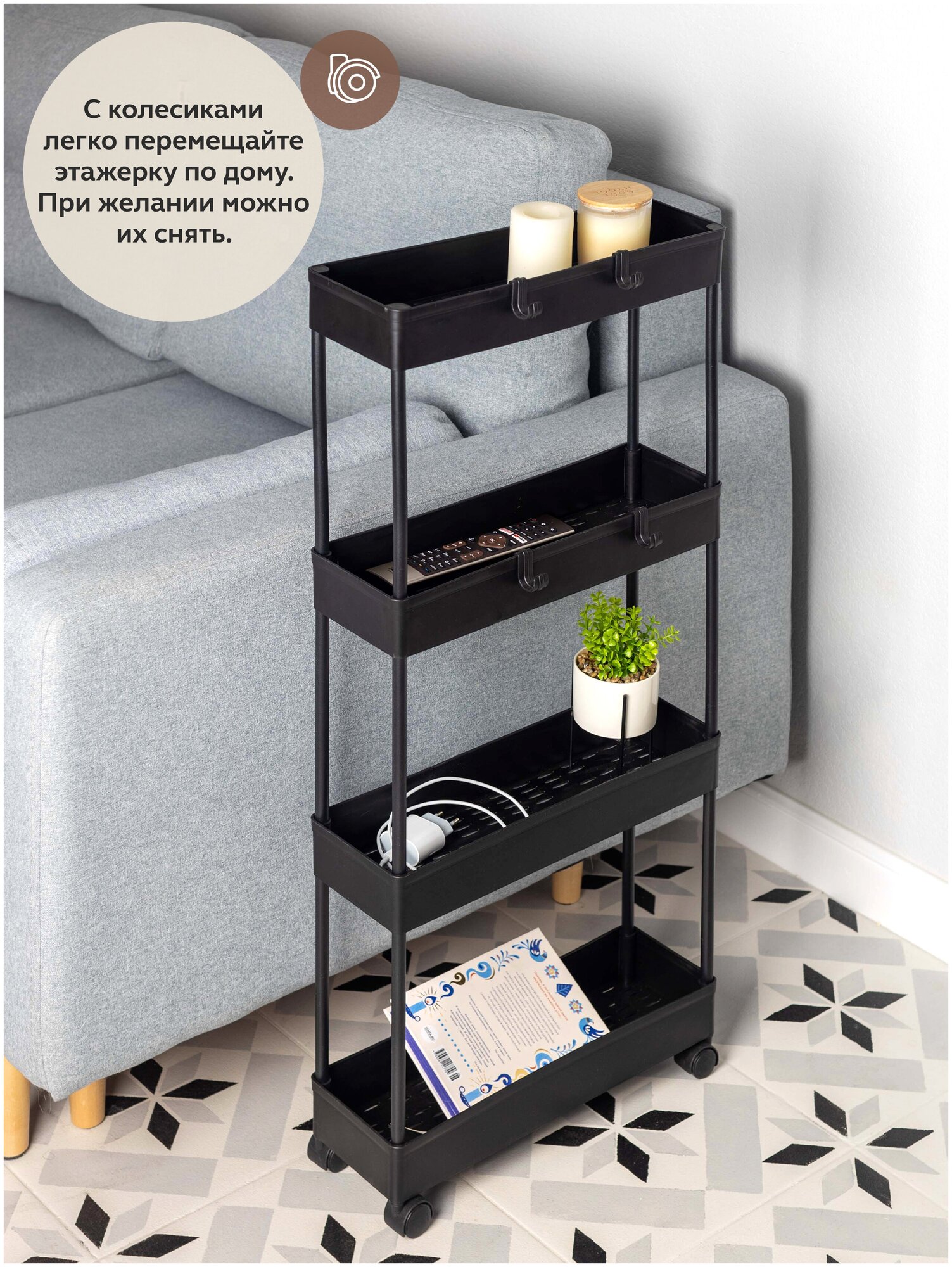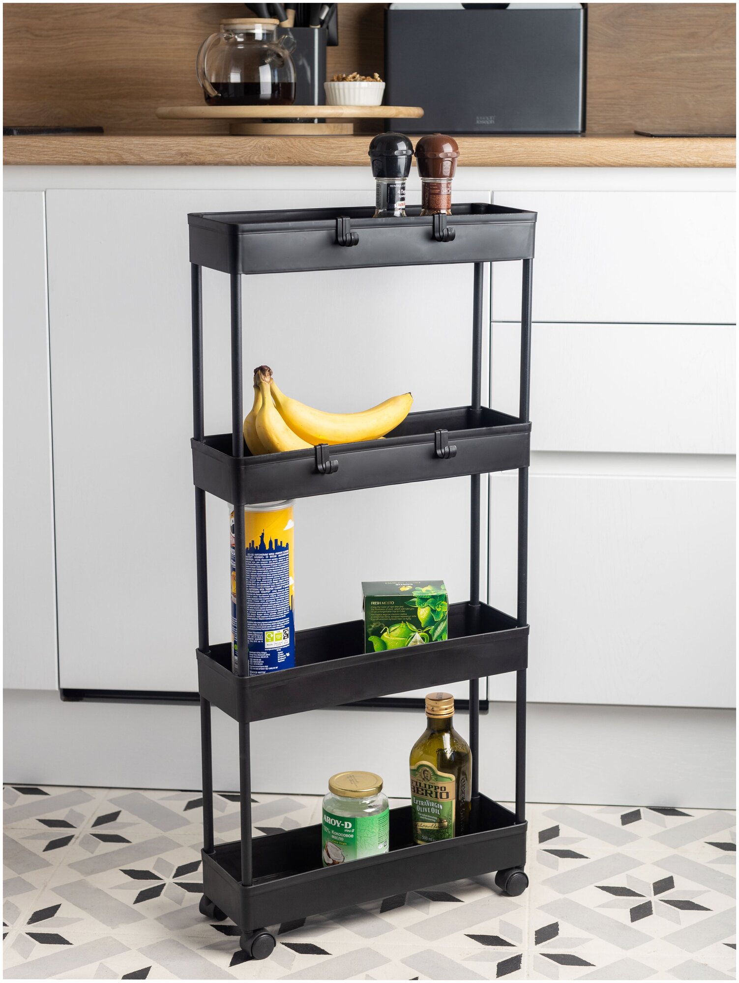 Этажерка GASTRORAG GR-750-4BB, узкая пластиковая, на колесиках, органайзер для кухни, полка для ванной напольная, тележка косметологическая