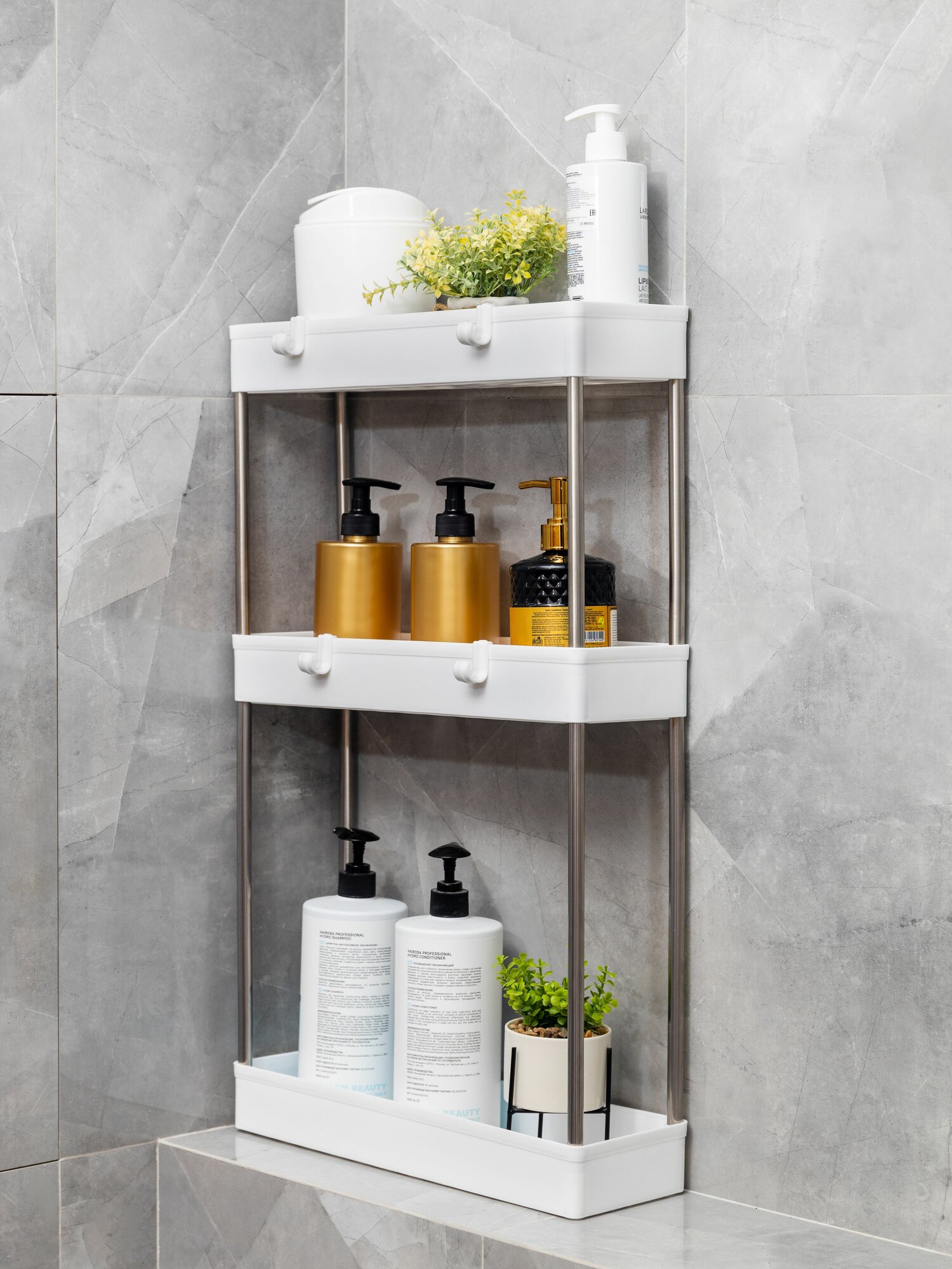 Купить Стеллаж органайзер GASTRORAG GR-750-3WH узкий пластиковый, на колесиках в ванную
