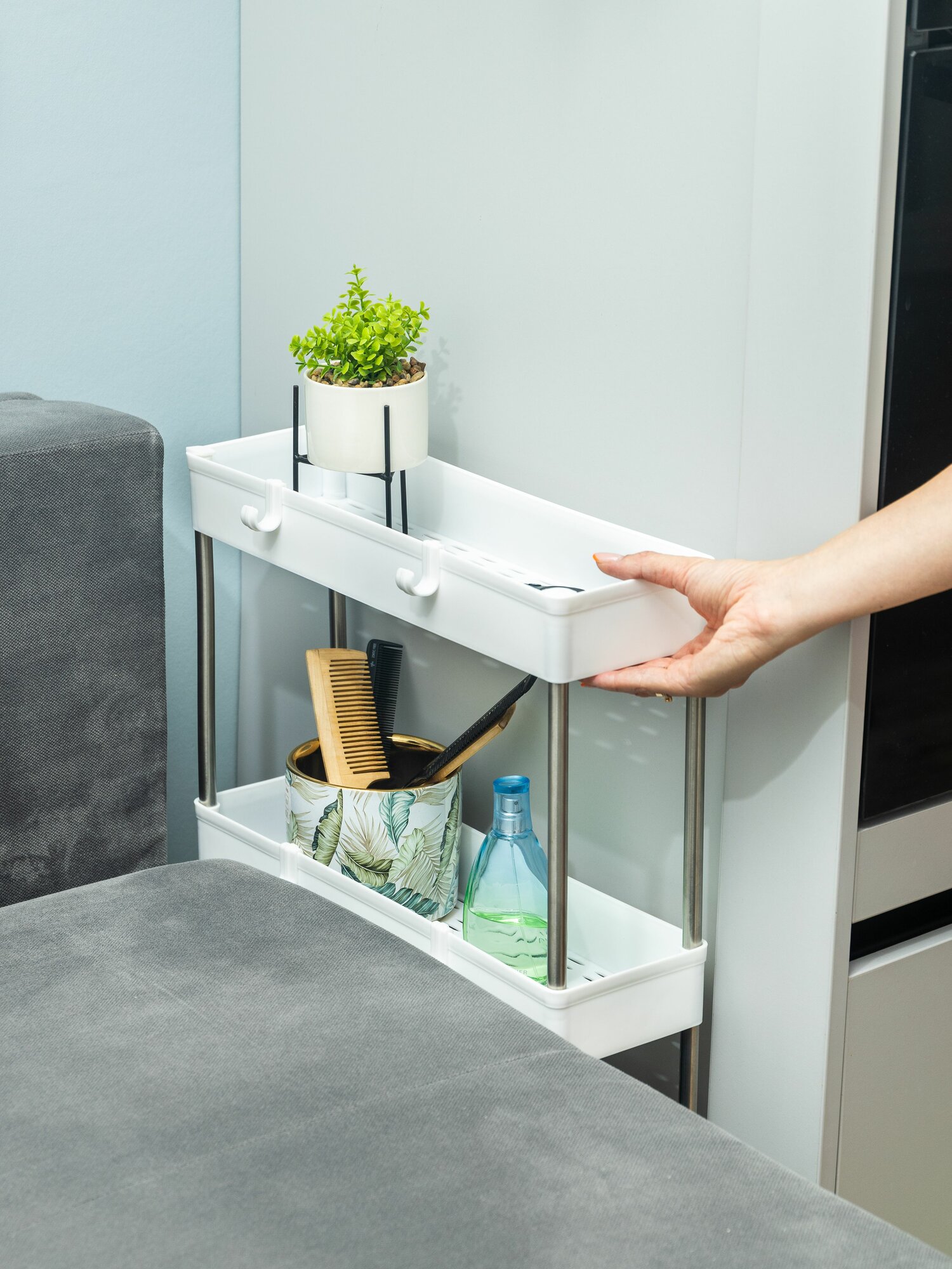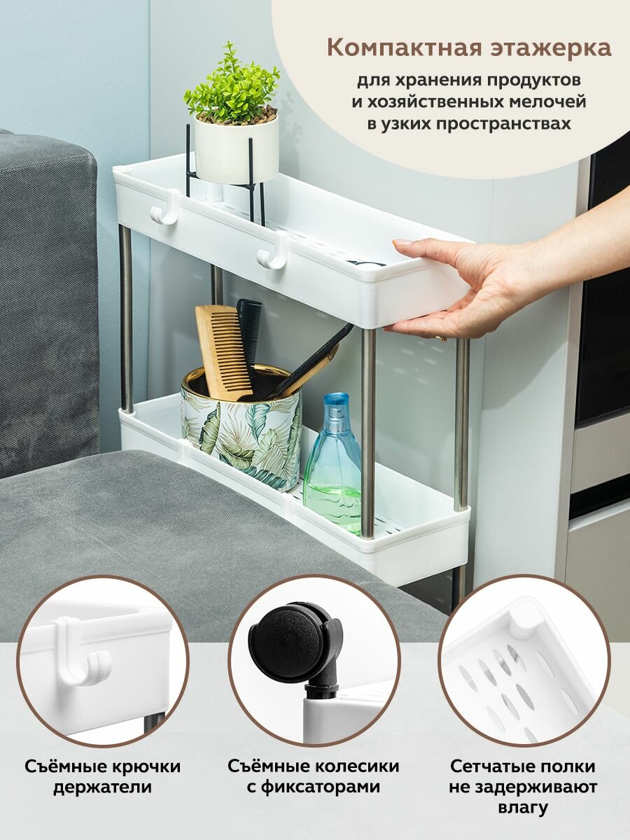 Этажерка органайзер узкая пластиковая на колесиках для ванной