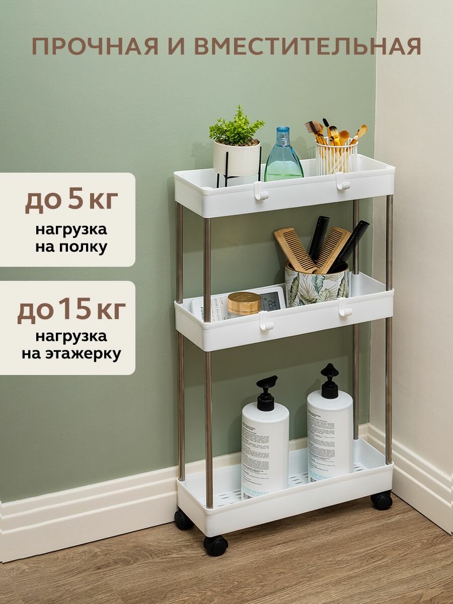 СохранитьСтеллаж органайзер GASTRORAG GR-750-3WH узкий пластиковый, на колесиках в ванную интересное: