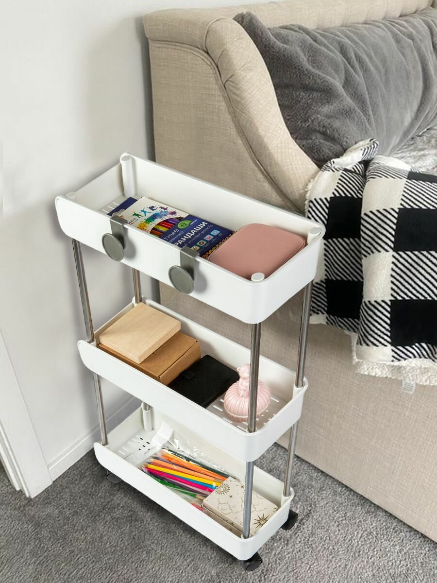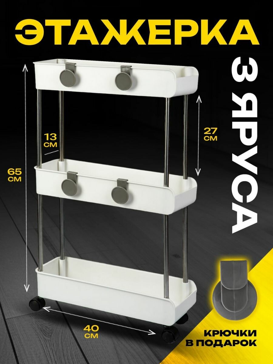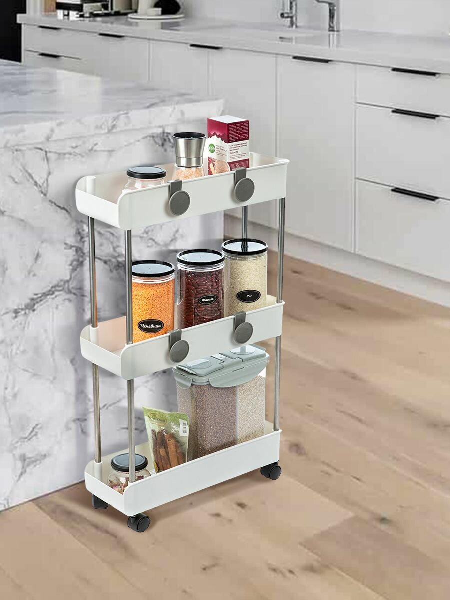 Купить Этажерка для ванной кухни JOYAREA на колесиках пластиковая узкая