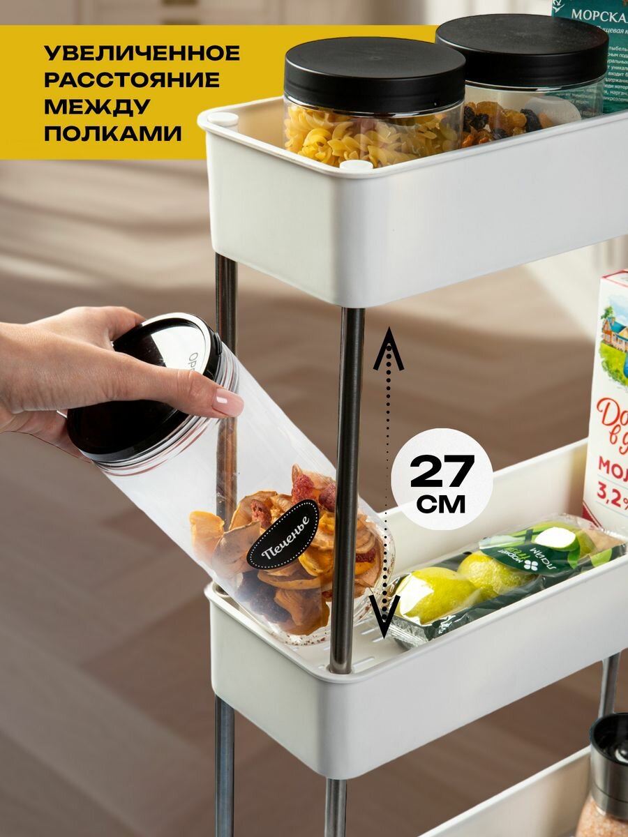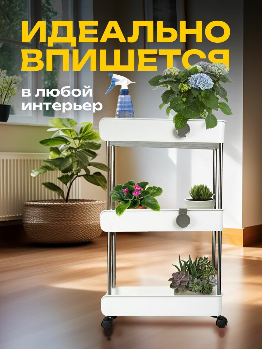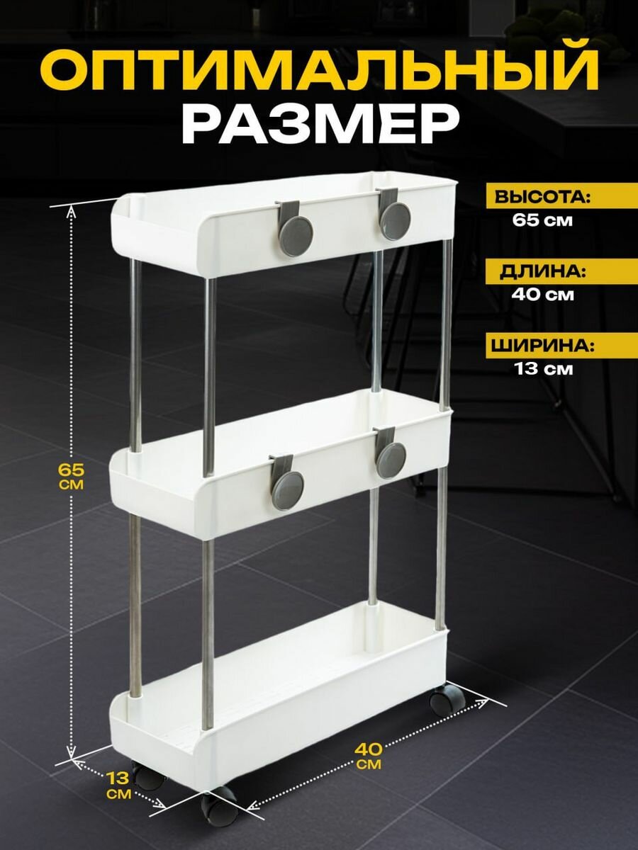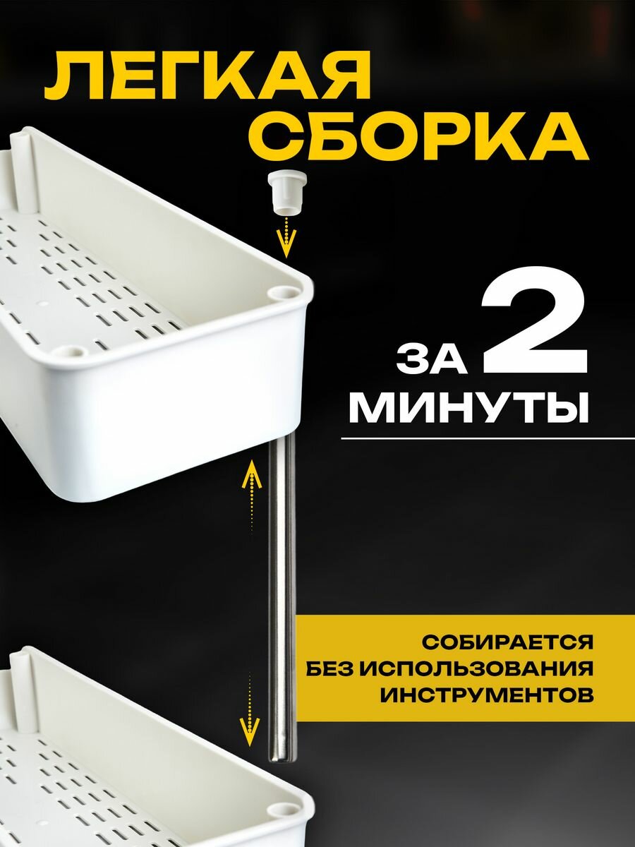 Купить Этажерка для ванной кухни JOYAREA на колесиках пластиковая узкая