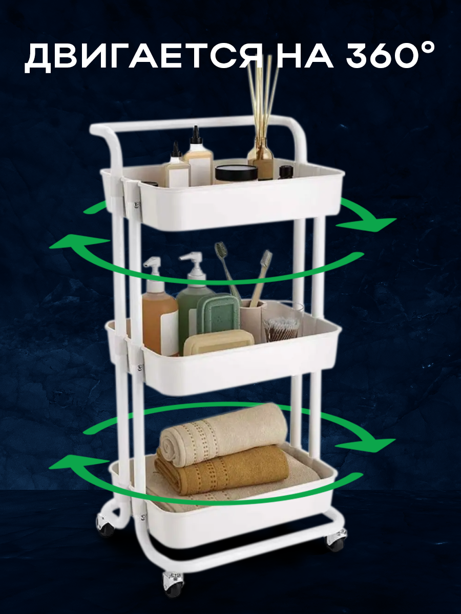Купить Набор: полка напольная на колесах (3 яруса, белая) + супер-микрофибра