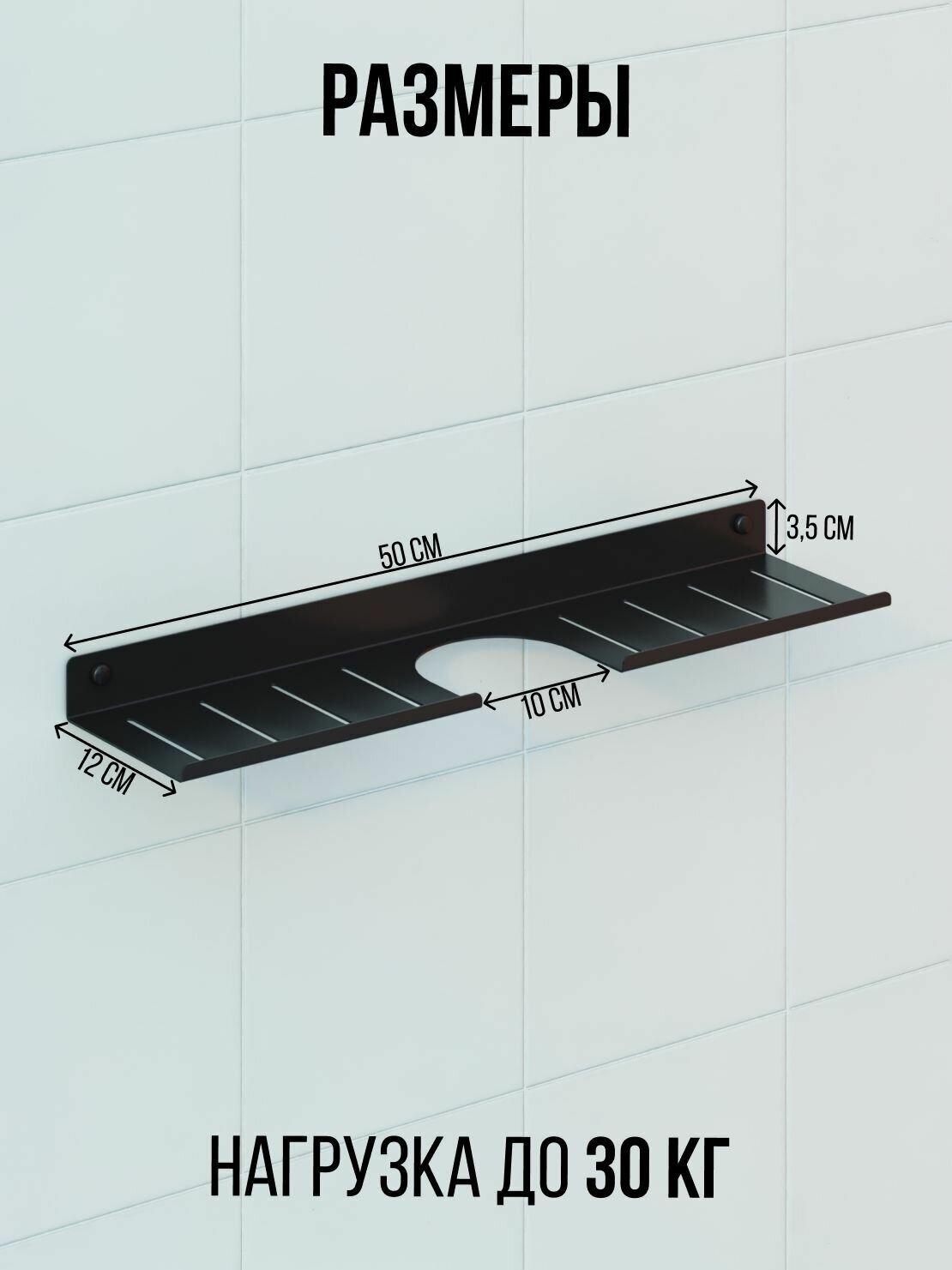 Полка для ванной комнаты, или кухни настенная с вырезом для смесителя черная интересное: