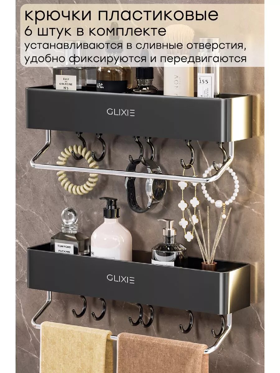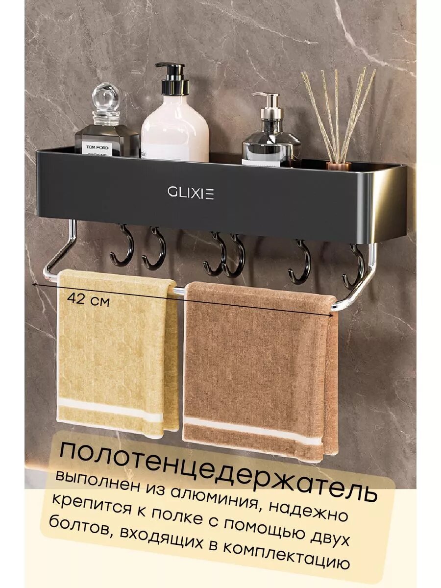| Комплектация | коробка; клейкая основа-1шт; шестигранник-1шт; болт-2шт; Полка-1шт; полотенцедержатель-1шт; крючки-6шт |