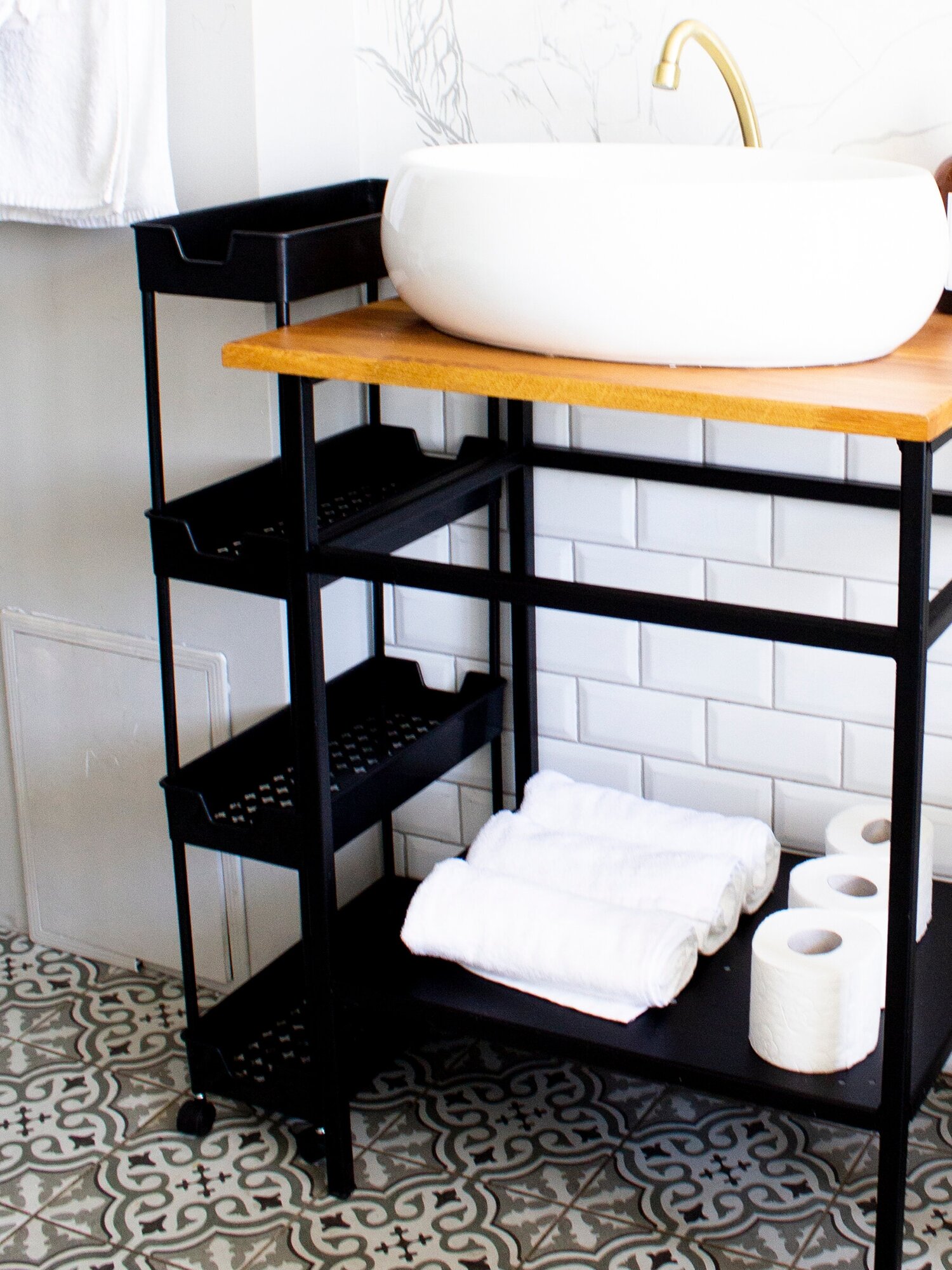 Этажерка для ванной и кухни, влагостойкая, стеллаж на колесиках, полка, органайзер Vporyadke черная интересное: