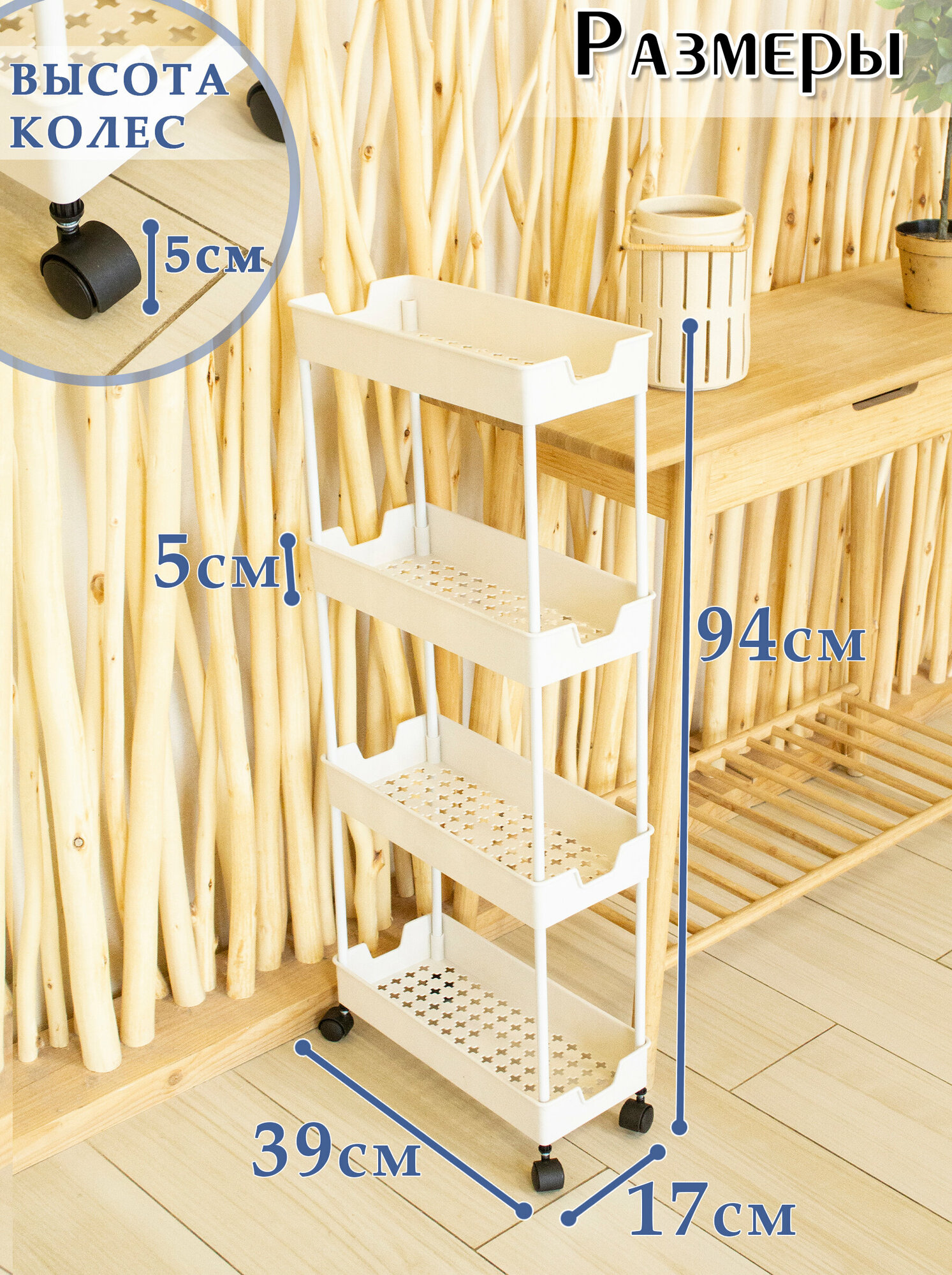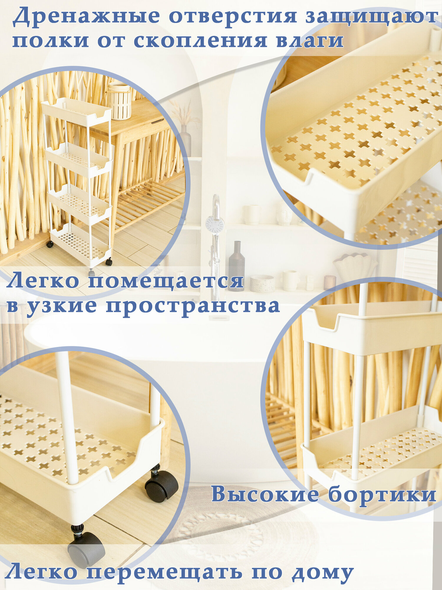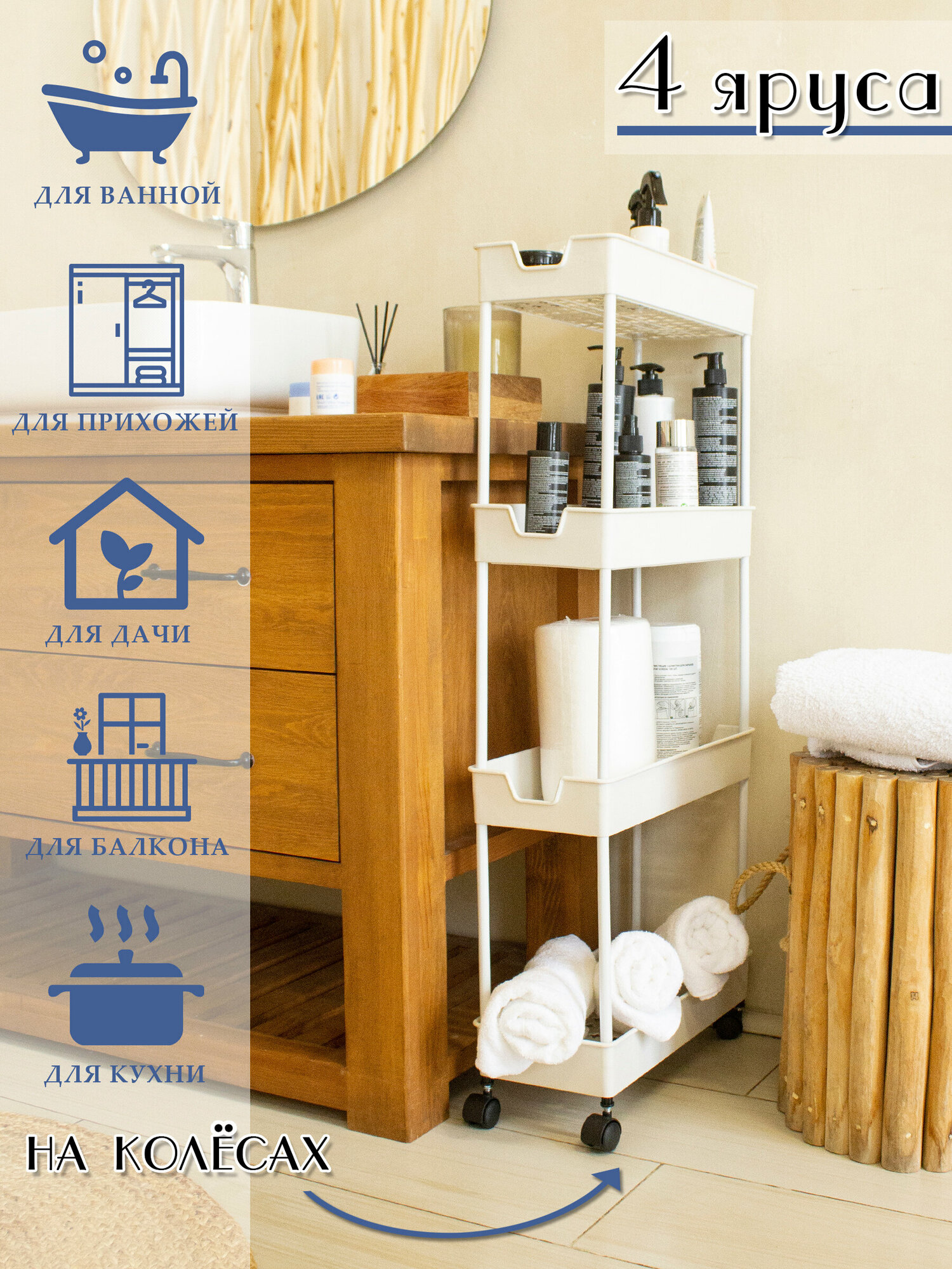 Этажерка для ванной и кухни, влагостойкая, стеллаж на колесиках, полка, органайзер Vporyadke белая интересное:
