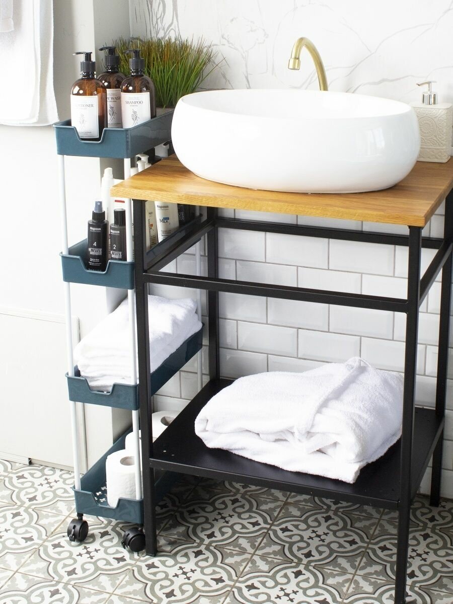 Этажерка для ванной и кухни, влагостойкая, стеллаж на колесиках, полка, органайзер Vporyadke синяя интересное: