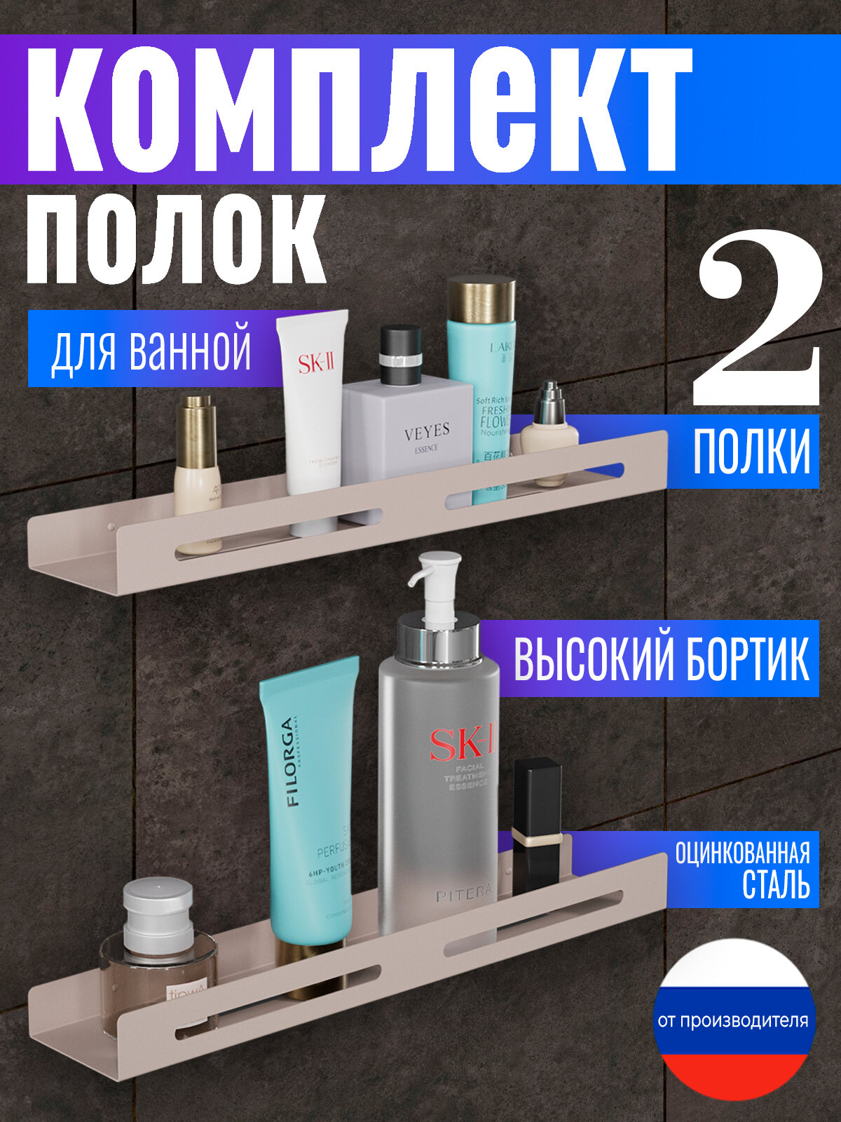 СохранитьКомплект полок для ванной и душа 2 шт., цвет бежевый, 45 см. интересное:
