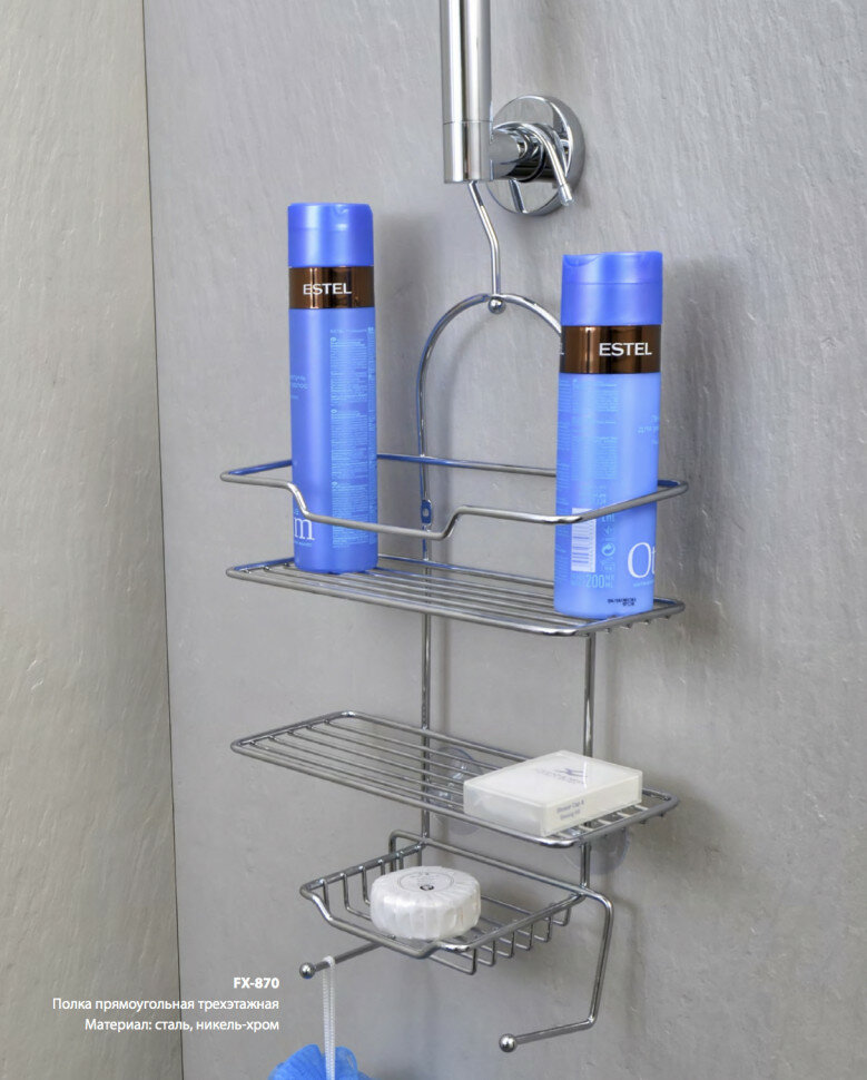 Полка прямоугольная Fixsen трехэтажная, хром (FX-870)