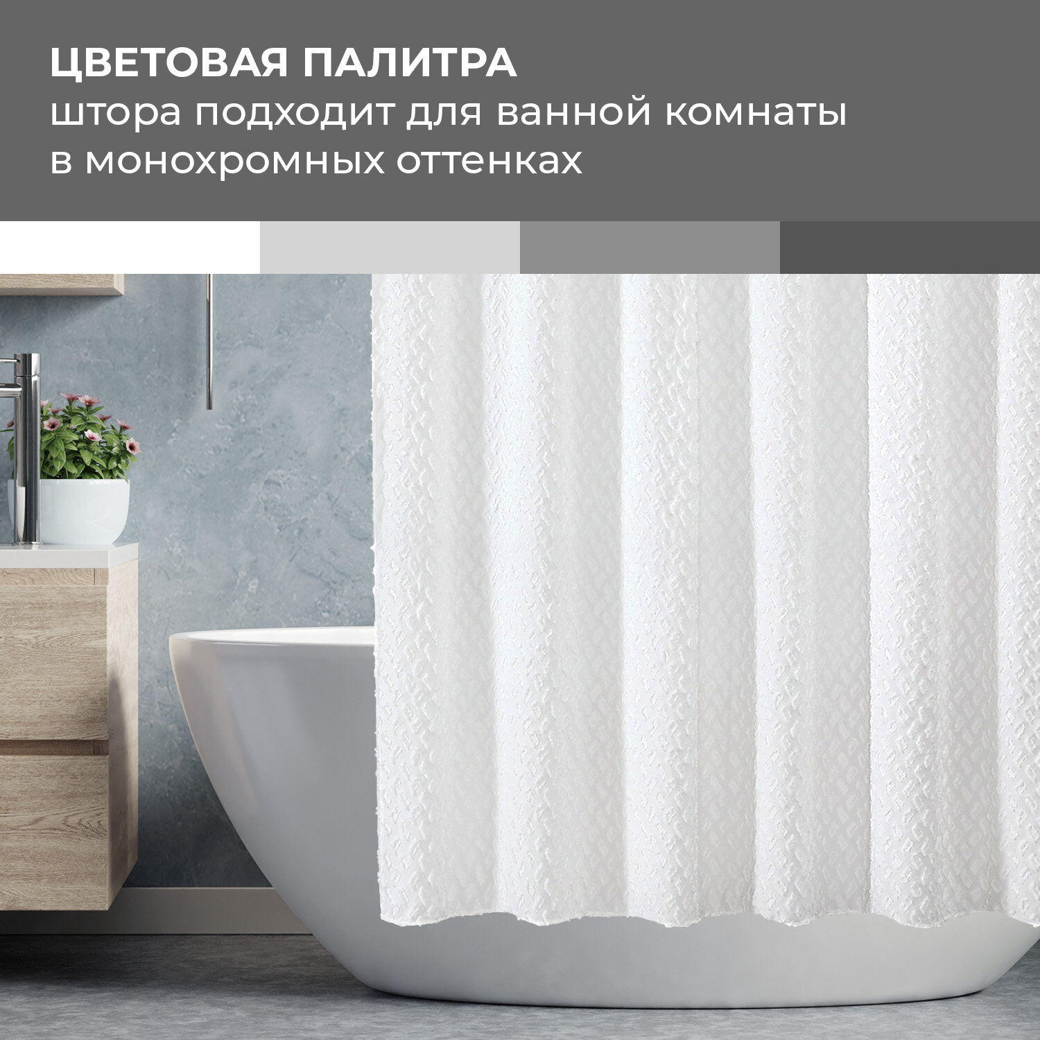 Штора для ванной комнаты, полиэстер, 180*180 см, фактурн., белый, CHIC FACTURE интересное: