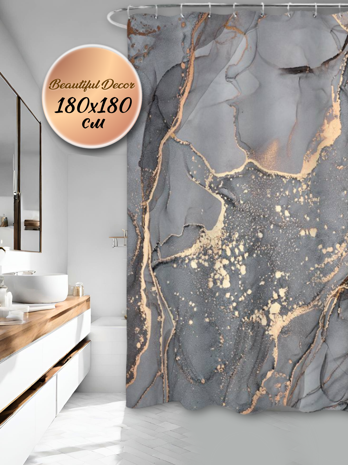 Штора для ванной тканевая с рисунком дуэт мрамор