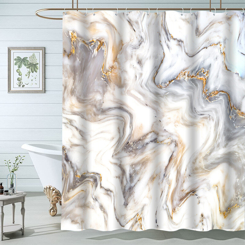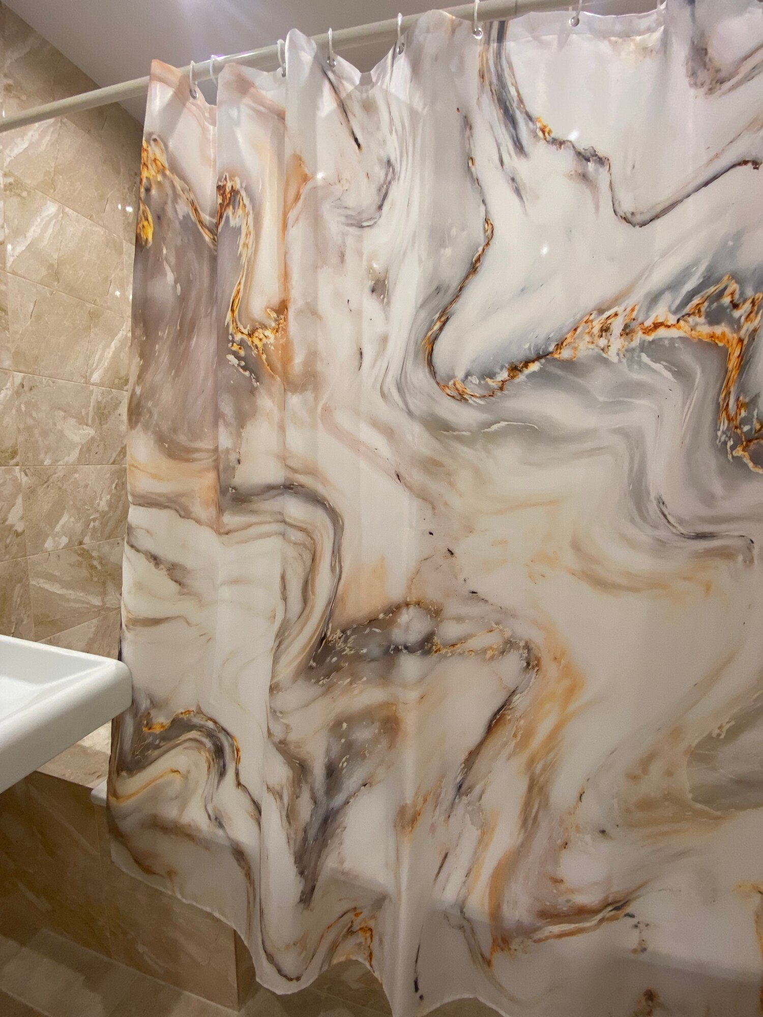 СохранитьШтора для ванной тканевая с рисунком светлый мрамор интересное:
