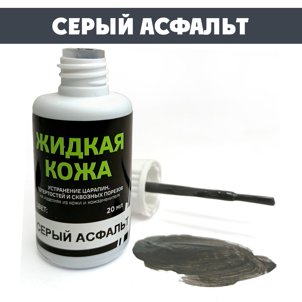 Купить Жидкая кожа, восстановитель кожи (Цвет - Серый асфальт) для ремонта мебели, авто, обуви и прочих кожаных изделий, без блистера, 20 мл