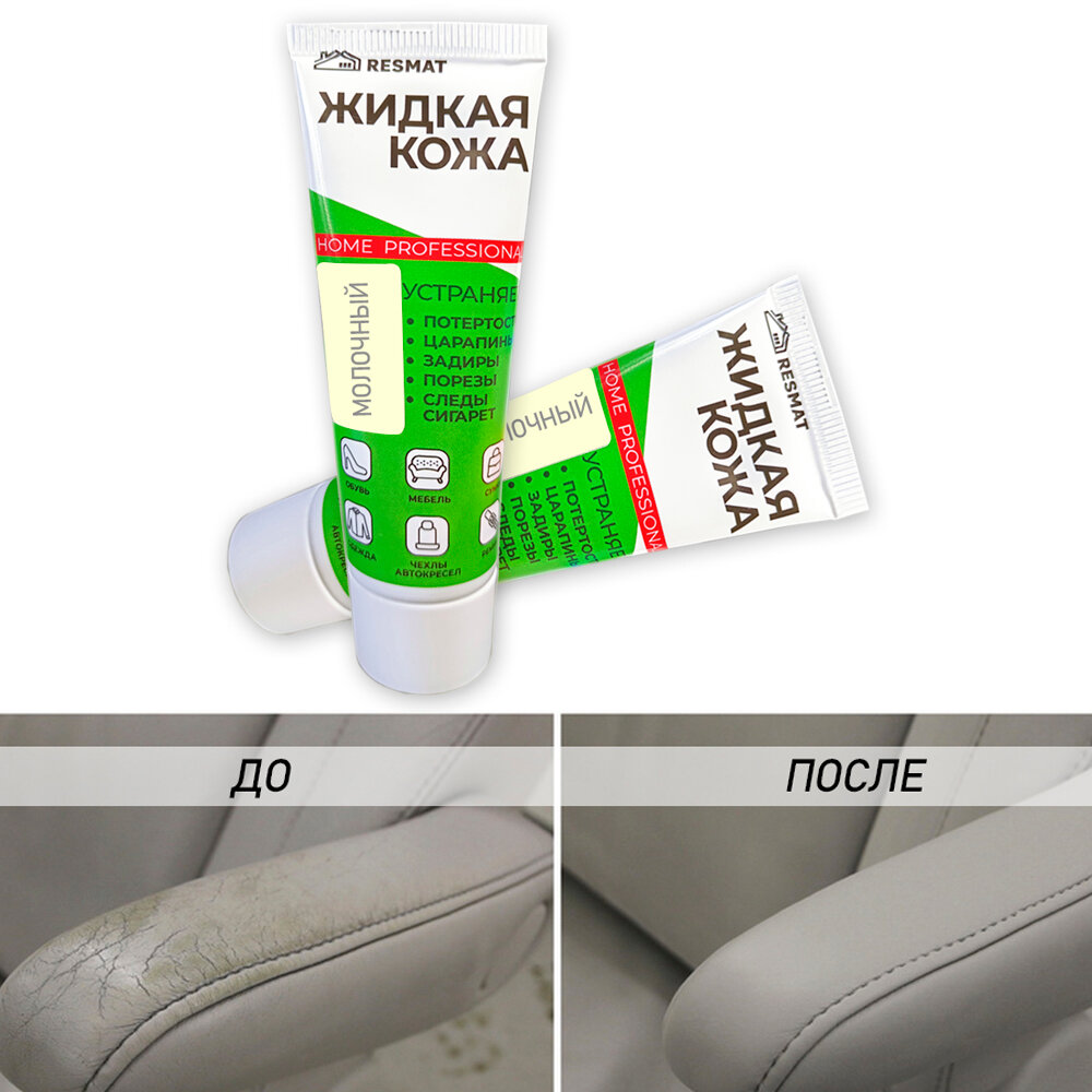 Жидкая кожа для мебели, одежды, восстановитель кожи Resmat 30 мл в тубе, Молочная