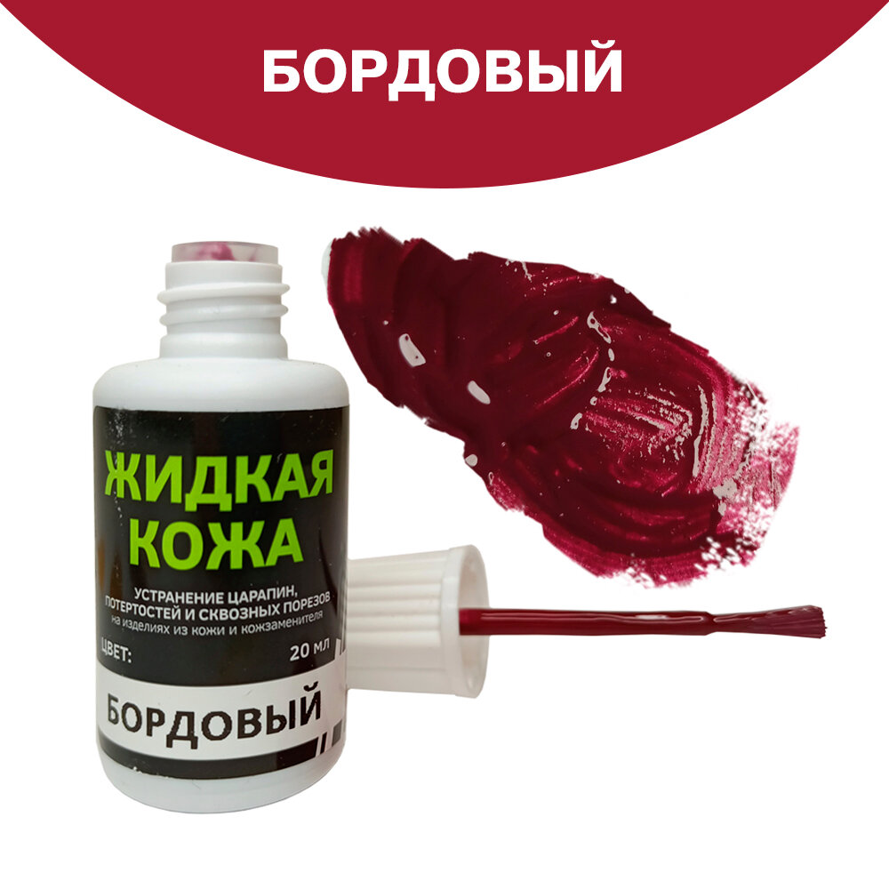 Жидкая кожа, восстановитель кожи (Цвет Бордо) для ремонта мебели, авто, обуви и прочих кожаных изделий, без блистера, 20 мл
