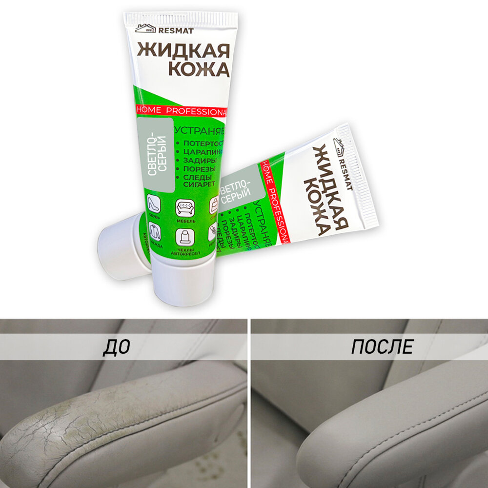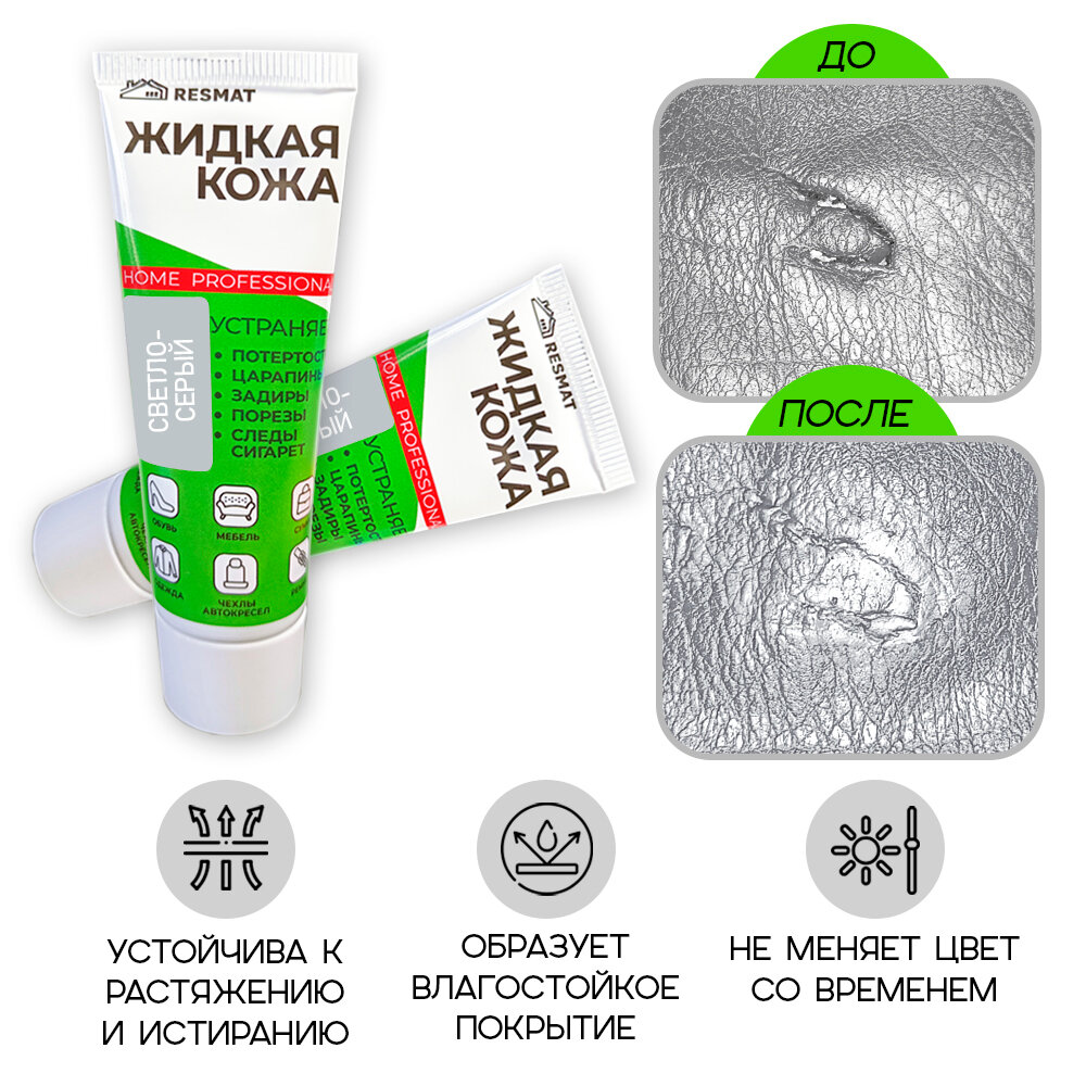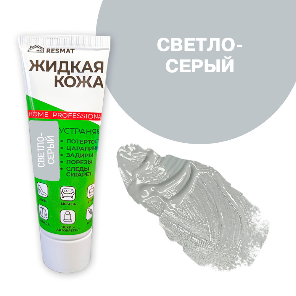 Жидкая кожа для мебели, одежды, восстановитель кожи Resmat 30 мл в тубе, светло-серая