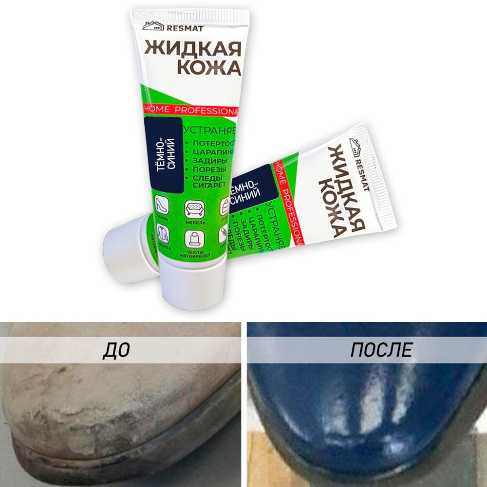 Жидкая кожа для мебели, одежды, восстановитель кожи Resmat 30 мл в тубе, Синяя