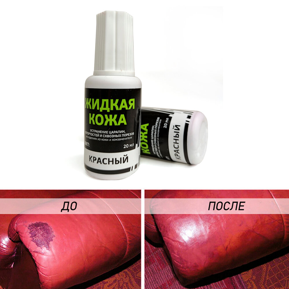 Жидкая кожа, восстановитель кожи (Красный цвет) для ремонта мебели, авто, обуви и прочих кожаных изделий, без блистера, 20 мл