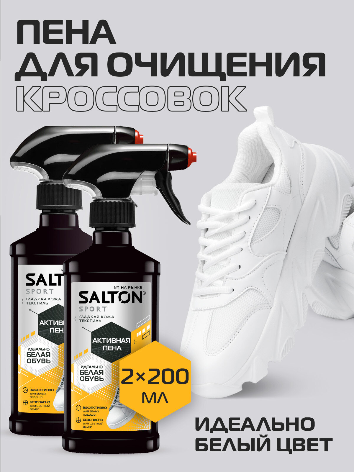 Купить Пена для обуви, Salton Sport, очищение кроссовок и подошв, 2 шт х 200 мл