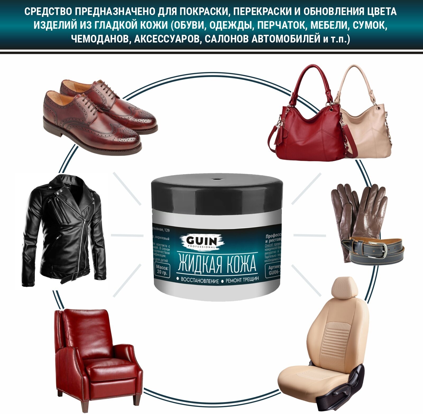 Жидкая кожа GUIN 20 гр Чёрный, восстановитель для ремонта обуви, сумок, авто, мебели, кожаных изделий, крем-краситель