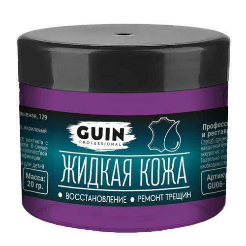 Жидкая кожа GUIN 20 гр Сирень, восстановитель для ремонта обуви, сумок, авто, мебели, кожаных изделий, крем-краситель