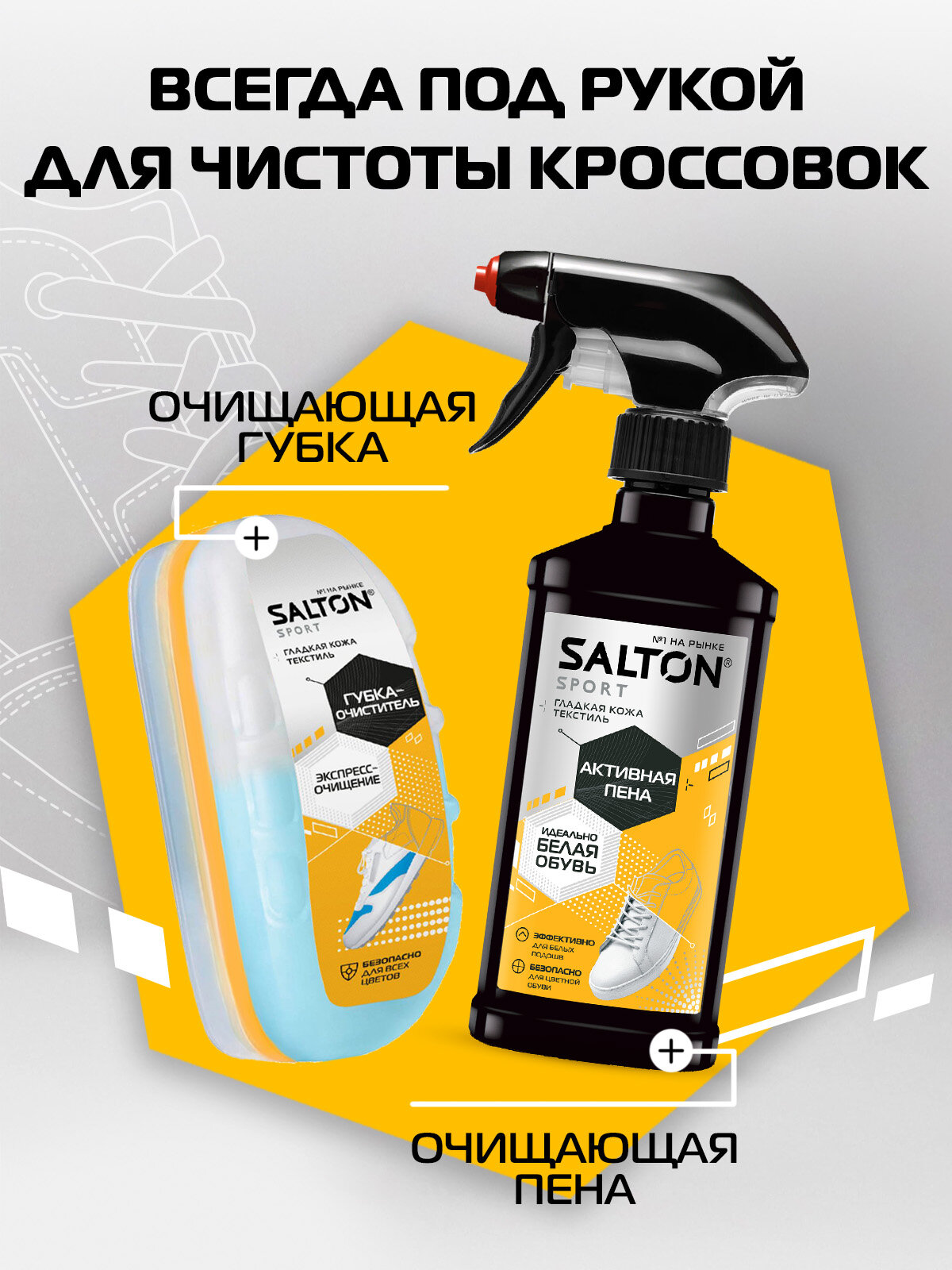 Активная пена для белой обуви + губка кроссовок, Набор для ухода за обувью Salton Sport
