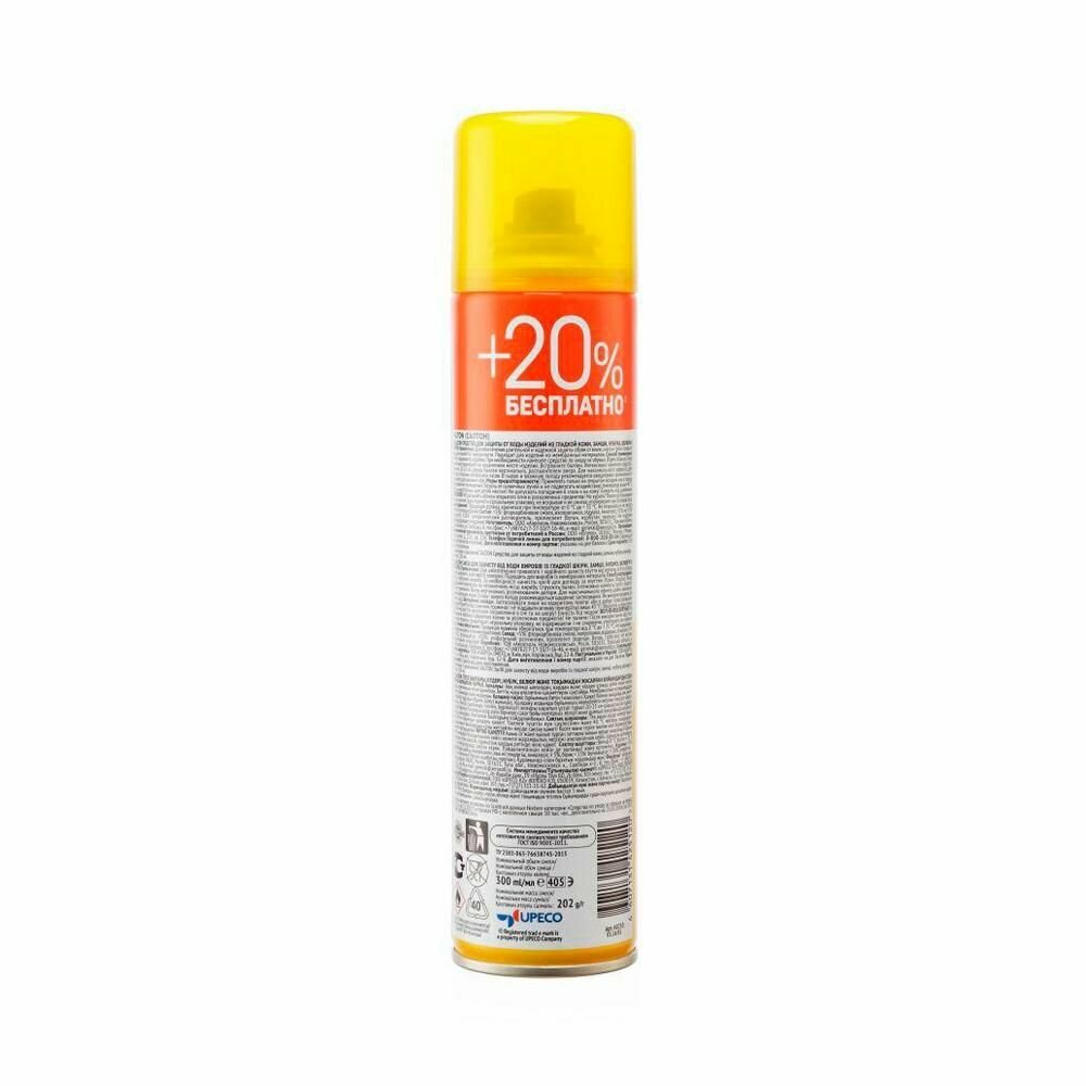 | Дополнительная информация | очистить поверхность, встряхнуть баллон, равномерно нанести на сухую поверхность (с расстояния 15-20 см), дать высохнуть, при сильных осадках требуется более частая обработка обуви; наносить за 4-8 часов до выхода на улицу. |