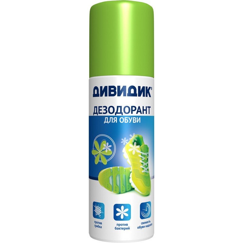 | Дополнительная информация | способ применения: встряхните баллончик дезодоранта для обуви «Дивидик» в течение 3-5 секунд; распылите средство на внутреннюю поверхность обуви, при необходимости дополнительно обработать вкладную стельку; не надевайте обувь сразу после обработки дезодорантом, необходимо чтобы она проветрилась и высохла в течение 20 минут |