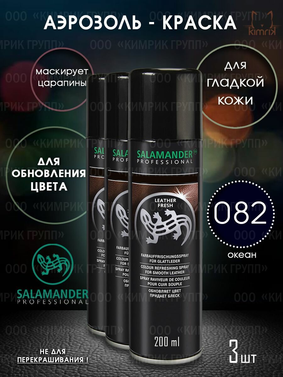 Спрей-краска восстановитель для гладкой кожи, цвет темно-коричневый, 3 штуки по 200 мл, Salamander
