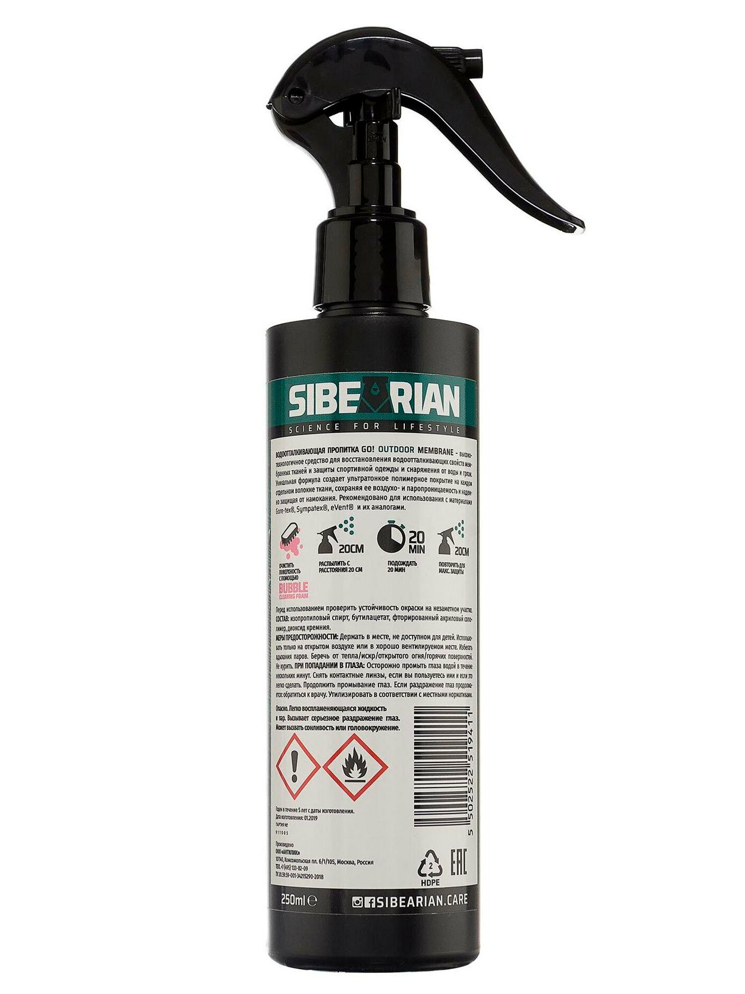 Водоотталкивающий спрей для одежды без запаха, пропитка для одежды из текстиля, для кожи, текстиля мембраны SIBEARIAN GO! Eco 250мл