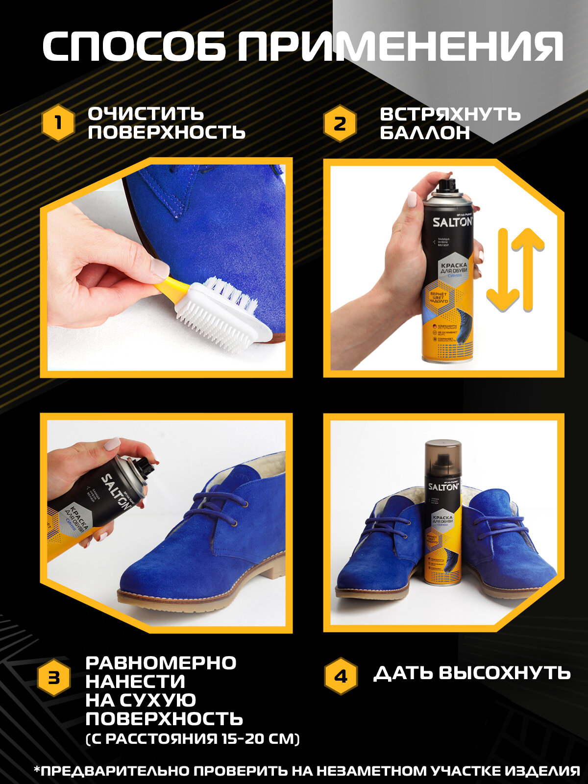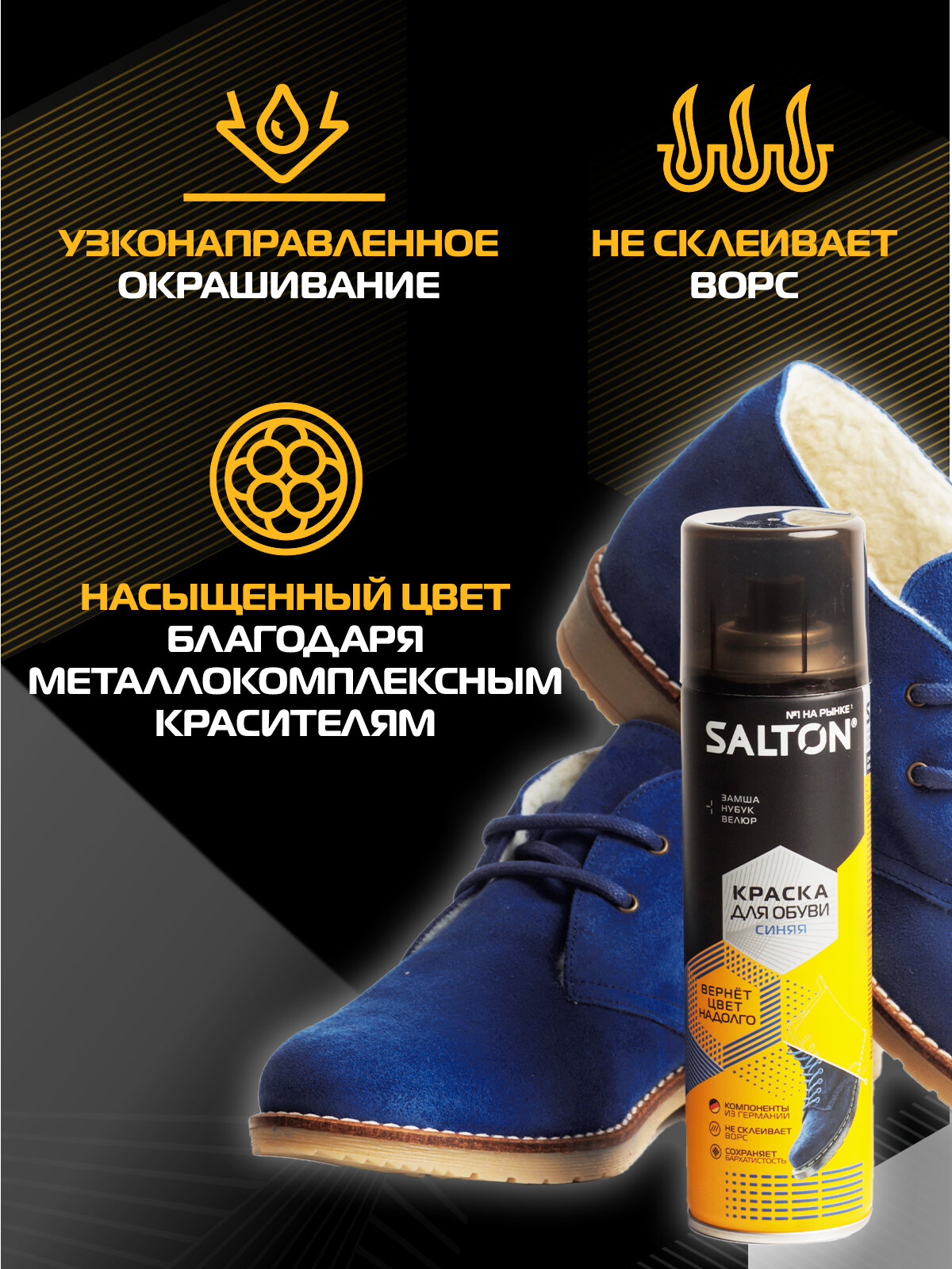 SALTON Краска для обуви из замши, нубука и велюра SALTON синий, 190 мл интересное:
