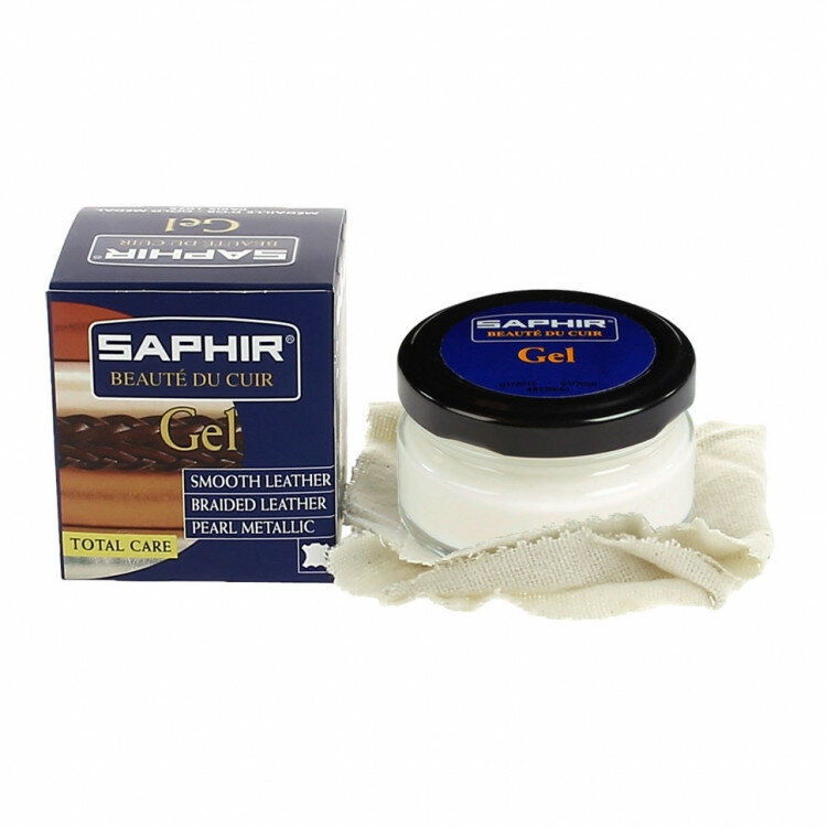 Гель Gel SAPHIR для всех видов гладких деликатных кож с перламутровым и оттенком "металлик", банка стекло с салфеткой, 50 мл.