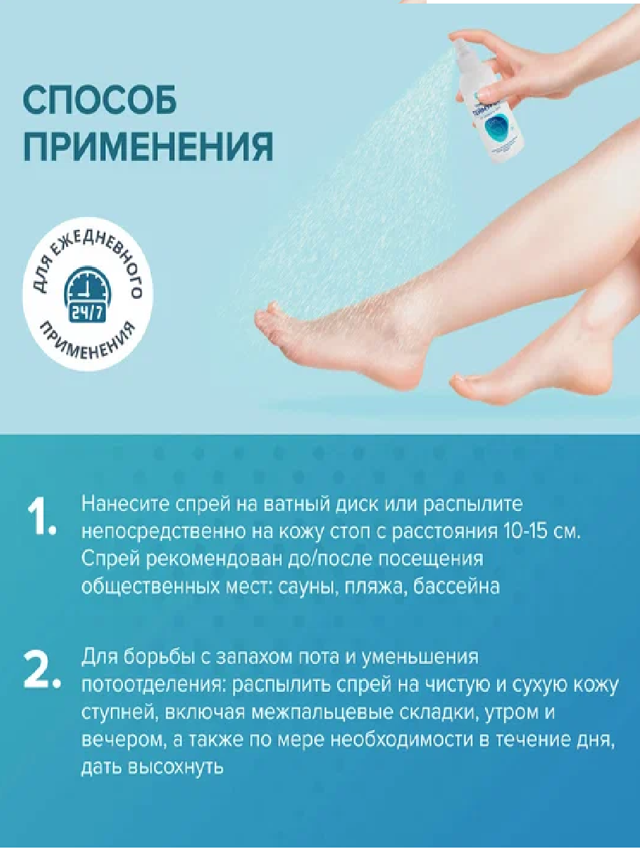 | Дополнительная информация | Спреи подходят для всех видов обуви, включая кроссовки, ботинки, туфли, сапоги и босоножки. Уникальная формула, разработанная в России, содержит ионы серебра, которые усиливают антибактериальный эффект. Ароматизатор представлен двумя ароматами: ментолом и мятой. Он не содержит вредных химических элементов и является безопасным для людей, животных и окружающей среды. Флакон с распылителем имеет компактный размер. |