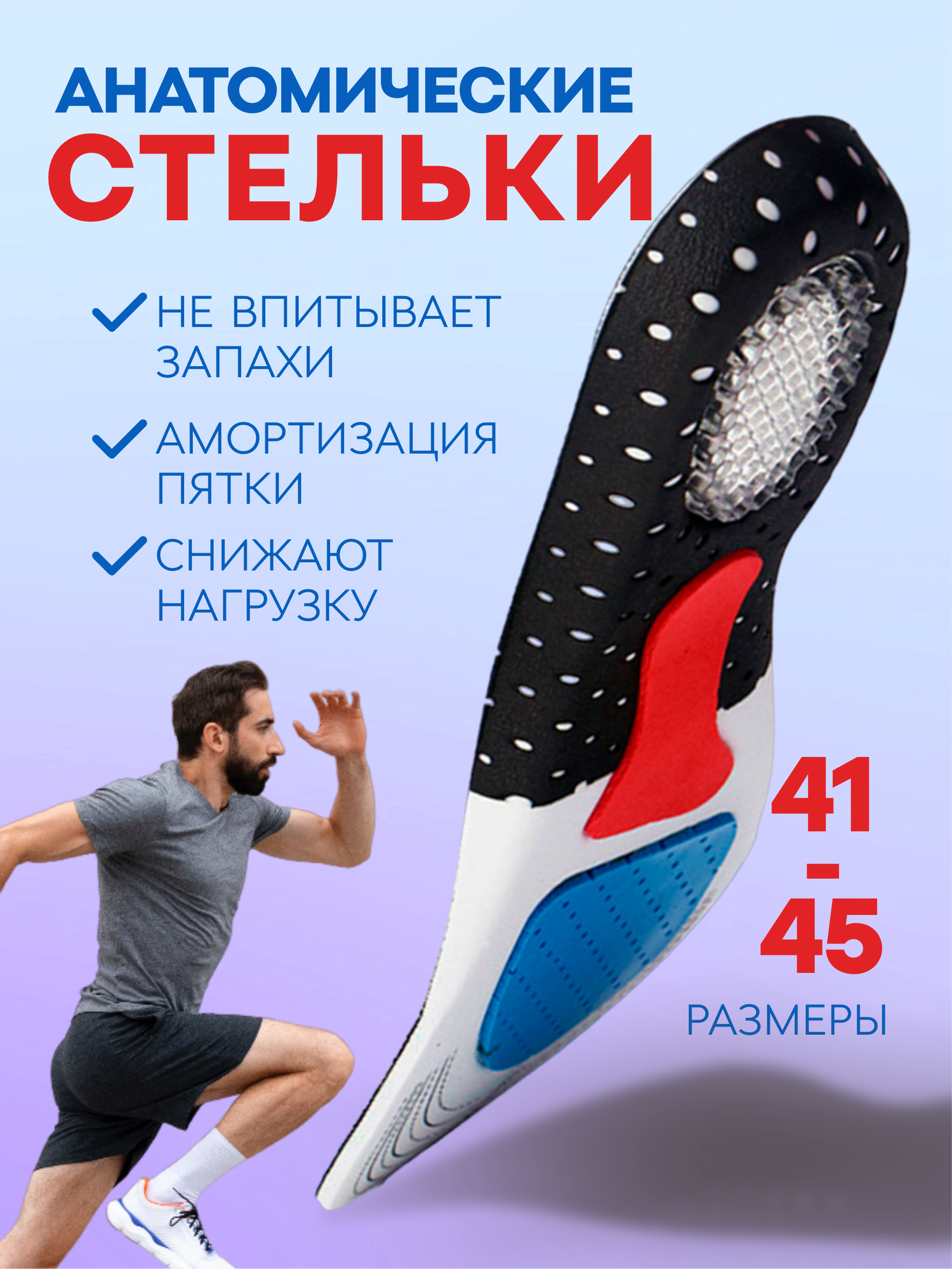 Стельки для обуви спортивные, анатомические, универсальные, цвет черный / белый / синий / красный